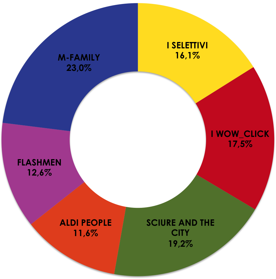 Shopping Map evidenzia sei differenti cluster di consumatori italiani: i Selettivi, i Wow_click, gli Sciure and the city, l’M-Family, i Flash men e gli Aldi people.