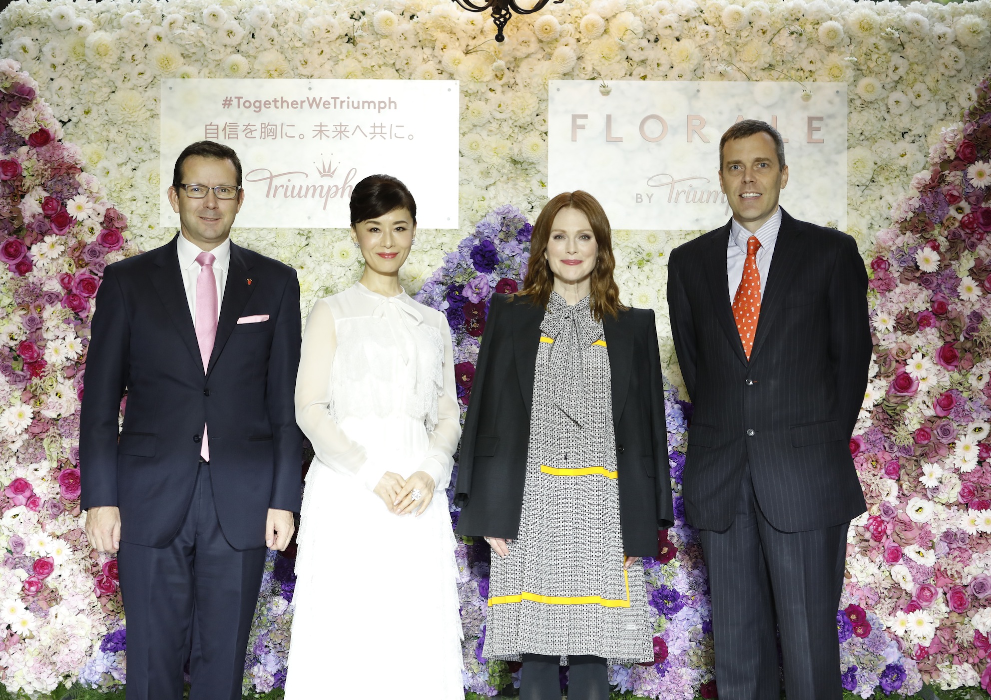 Le due attrici sono state protagoniste di un pomeriggio dedicato alla bellezza femminile con una sfilata e una tavola rotonda. A fare gli onori di casa, Oliver Spiesshofer, Triumph manager partner e Vincent Nelias, presidente dell’azienda di corsetteria in Giappone.