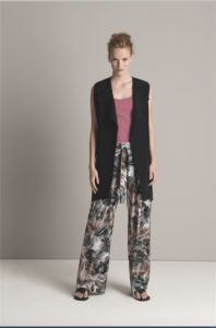 La collezione legwear e easywear riprende questi temi e li enfatizza: foglie tropicali si trasformano in stampe impalpabili, cascate di lurex impreziosiscono i capi, mentre la viscosa dà un tocco gloss alle gambe in stile glamour anni 80. Reti e traforati sembrano quasi realizzati all’uncinetto con un allure hand made.