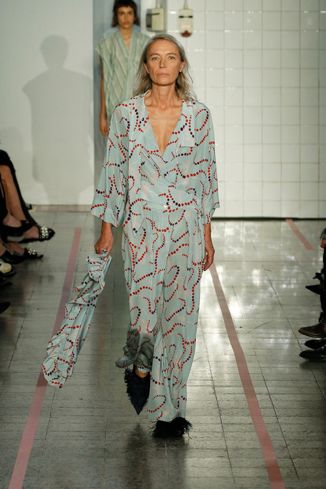 La stilista ha infatti ideato una linea che si ispira alla lingerie: camicie da notte e sottovesti sovrapposte ad abiti e pantaloni, ma anche pigiami militari che si abbinano a kimono e camicie trasparenti. In passerella, inoltre, ha voluto portare donne ordinarie: la dj e la giornalista, la neomamma e l’architetto, le amiche di Modena, i bei volti scovati per strada.