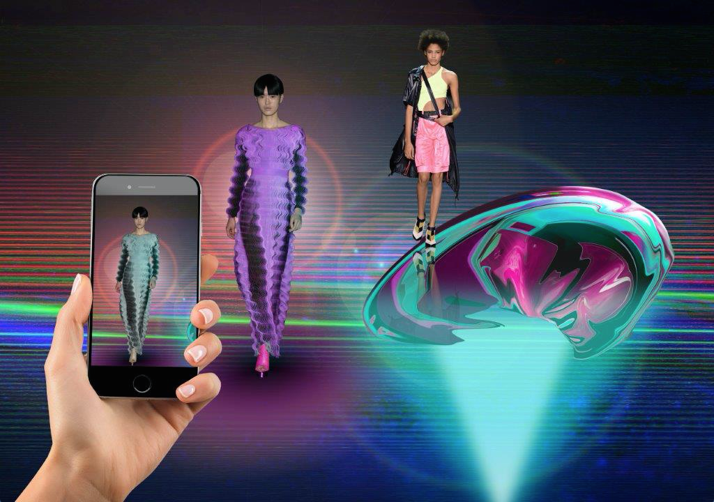 Infine il tema Into the cloud che propone capi realizzati con metodi innovativi che evidenziano dettagli stampati e accessori in 3D. La vestibilità è migliorata grazie alla tecnologia body-scanning. La forma conferisce glamour e sensualità ai tessuti tecnologici, agli accessori e ai processi di produzione. Morbidi tessuti uniti o micro-texture appena accennate rimandano a stampe futuristiche.