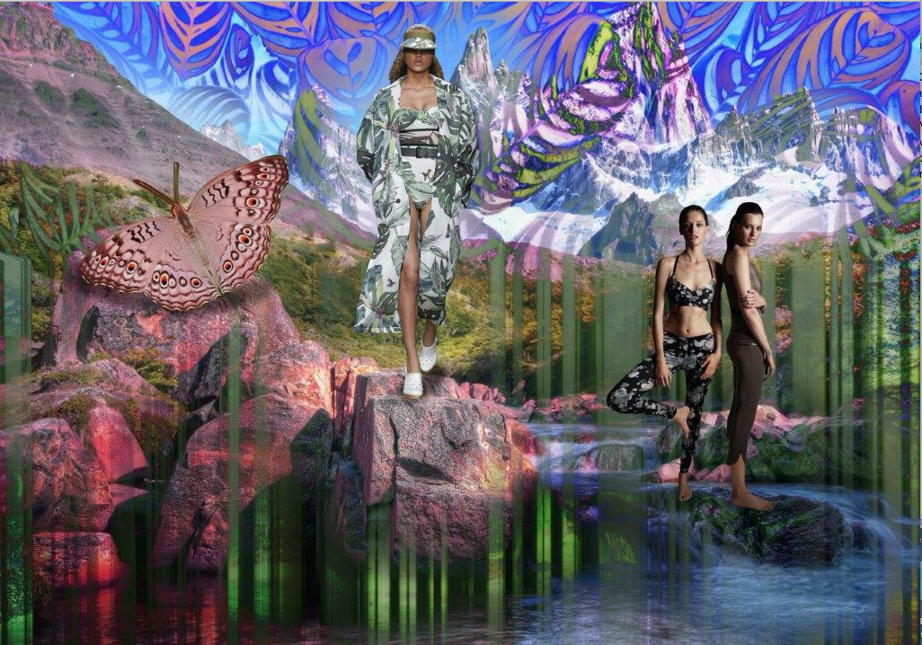 Nel trend Next Nature la foresta è la fonte d’ispirazione principale, con le sue tonalità verde palma e i colorati piumaggi che vi regnano. In questo tema il concetto di ibrido è al centro perché outwear e moda mare si fondono. Le irregolarità proprie della natura sono riprodotte attraverso la tecnologia digitale, creando effetti marmo e pietra naturale. Questo trend privilegia tessuti artificiali, ma ispirati dalla natura: superfici lisce come pelle, pelose o simili al guscio di una tartaruga.