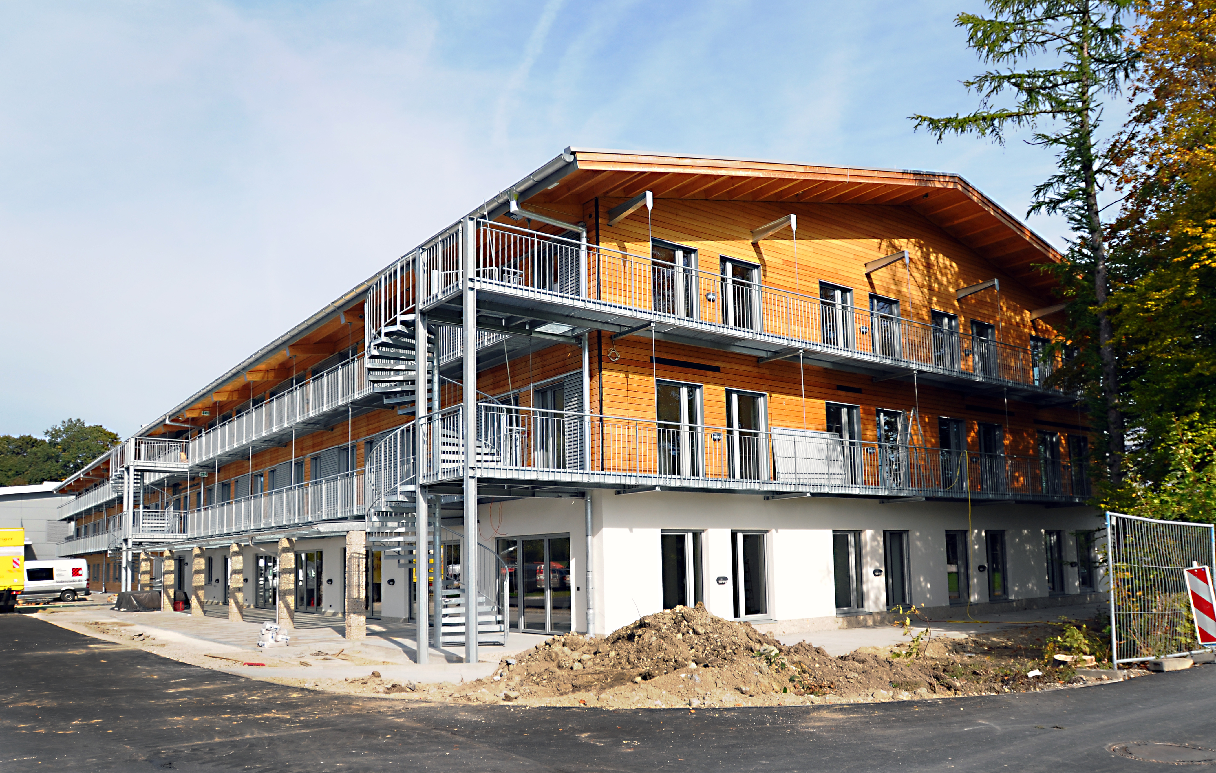 La nuova costruzione è stata progettata rispettando lo stile tipico dell’Alta Baviera a cui è stato conferito un tocco moderno e funzionale, affiancando materiali come il cemento e l’acciaio al legno. Nel complesso aziendale, tutti gli uffici hanno accesso diretto ai balconi che corrono intorno all’esterno dello stabile, mentre le ampie vetrate all’interno lasciano entrare ancora più luce. Il nuovo complesso è stato organizzato in modo da facilitare la comunicazione tra varie unità aziendali per ottimizzare l’attività della società.