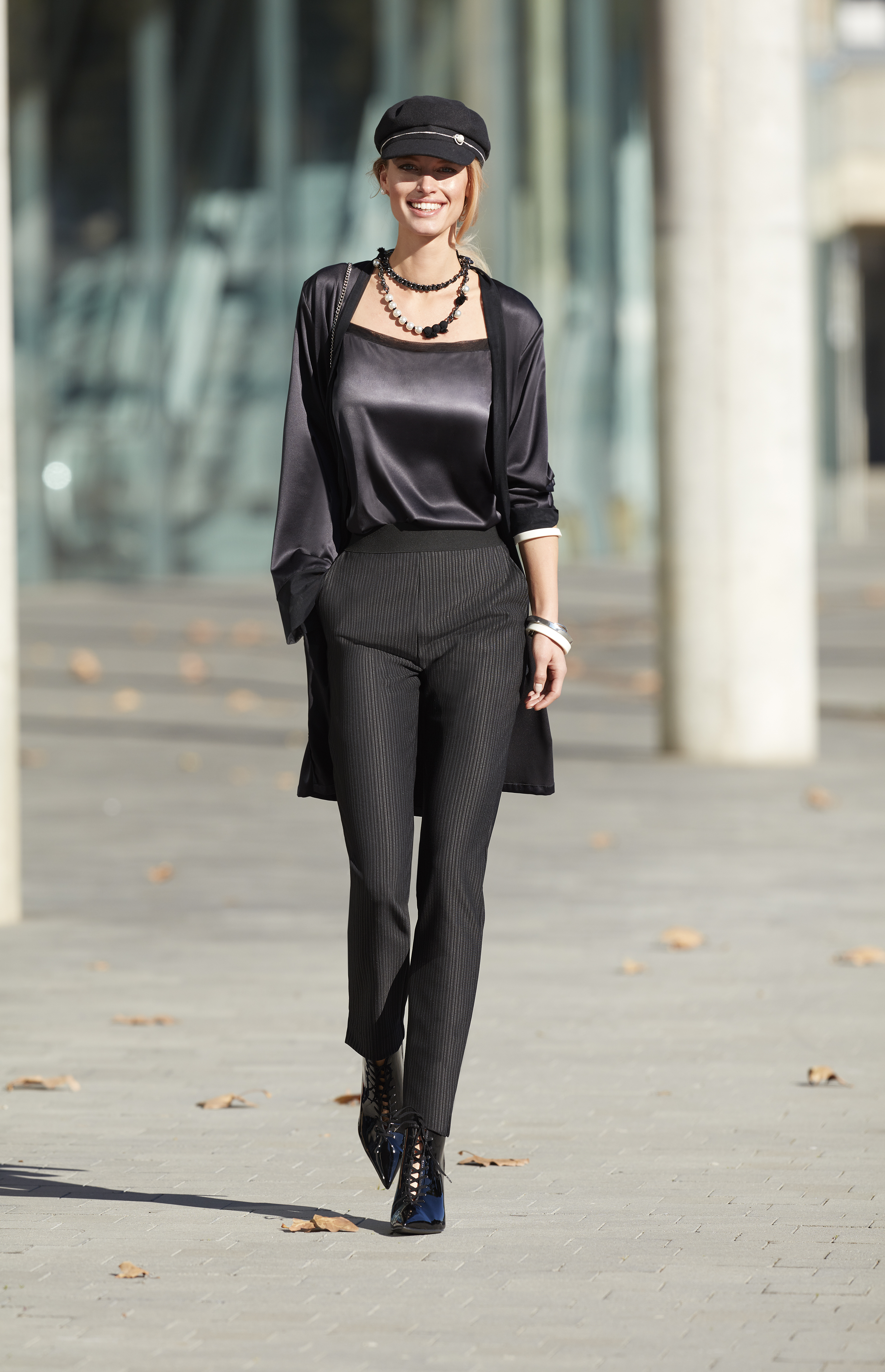 Per l’inverno 2018-19, Janira propone tre diverse linee di pants: Diplomatic, Abella e Soft Jeans. La serie Diplomatic è in tessuto jacquard gessato, che snellisce e modella la silhouette. La linea propone due modelli: i leggings e i pants. I primi assicurano un effetto snellente e svolgono un’azione di controllo sull’intera gamba. Inoltre, vantano dettagli curati quali le false tasche frontali, il carré e le pratiche tasche posteriori. I pants, invece, sono rifiniti con vita a coste, tasche laterali, patta posteriore e pince sul retro per migliorare la vestibilità.