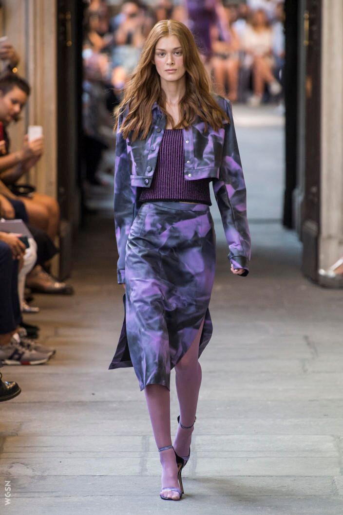 Lo stilista valorizza i rivoluzionari trattamenti dagli effetti grafici applicandoli a tessuti nobili ma dall’appeal ‘urban’ e ‘contemporary’.