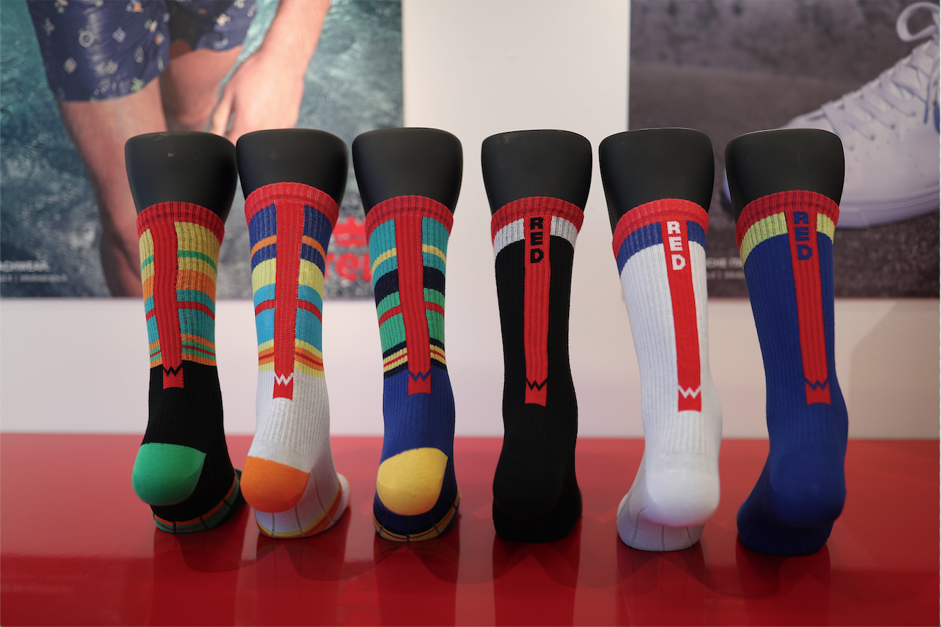 La collezione propone calze tecniche-sportive realizzate in cotone bio e disegnate da Tiziano Guardini, l’eco-stilista che da gennaio guida l’ufficio stile di Red, il brand dello storico Calzificio ReDepaolini.