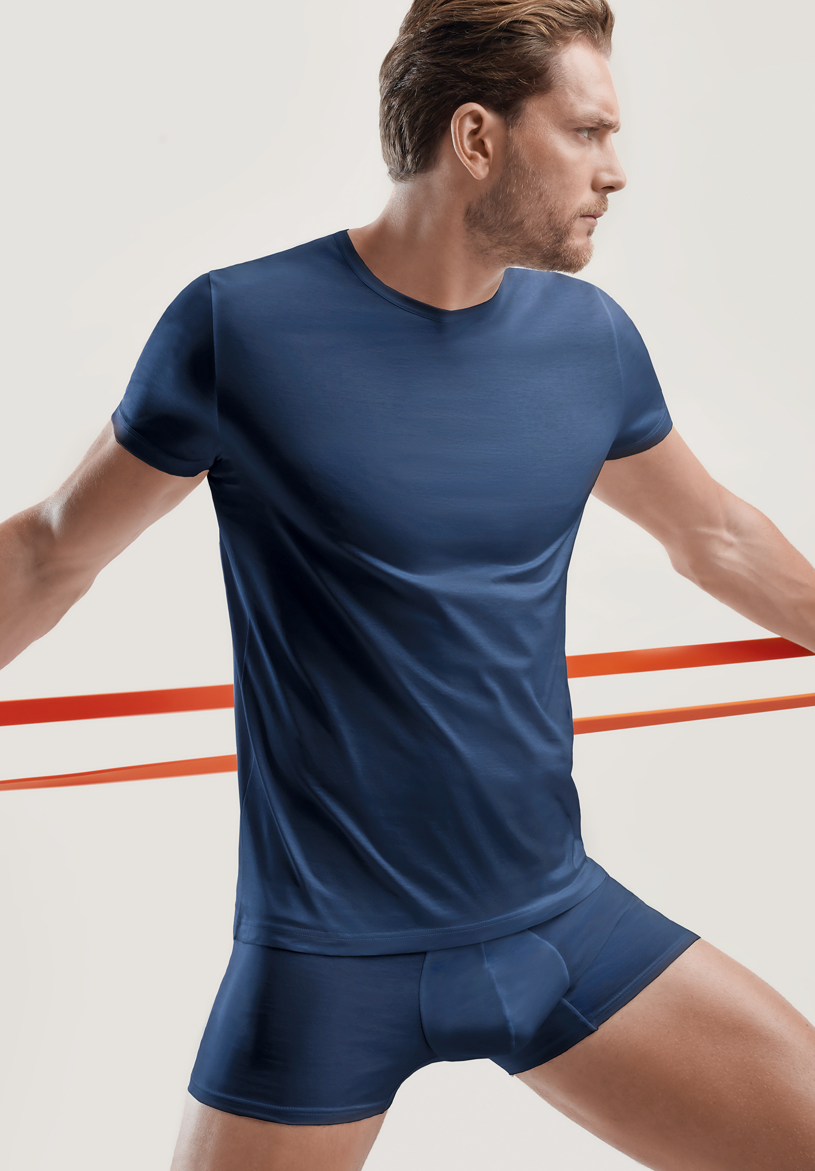 Per le parti basse viene usato tessuto in filo di Scozia elasticizzato e di ultimissima generazione per garantire sostegno e un fit moderno. Invece per le parti alte viene adottato il filo di Scozia 100% con una elasticità intrinseca per assicurare la freschezza. Più in particolare è stato scelto cotone 100% dal fitting moderno per le parti alte che propongono tre varianti (scollo rotondo, a V profondo e canotta a spalla larga) e assicurano libertà di movimento, comfort e vestibilità grazie anche a cuciture extra piatte in microfibra e senza etichetta. Queste caratteristiche si ritrovano a specchio anche nelle proposte per le parti basse ovvero slip vita bassa, slip medio, short push up e parigamba. Le parti basse vantano anche un nuovo elastico interno in vita e sono realizzate in cotone 94% e 6% elastan per un’elasticità superiore e per una perfetta aderenza al corpo. Tra queste, il short push up è il modello di punta grazie all’anima elastica della conchiglia che sostiene senza costringere.