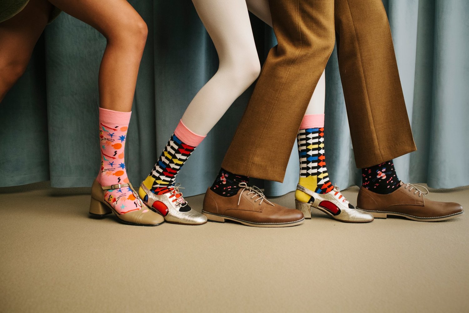La collezione offre sette diverse fantasie di calzini colorati in morbido cotone pettinato per uomo, donna e bambino.
