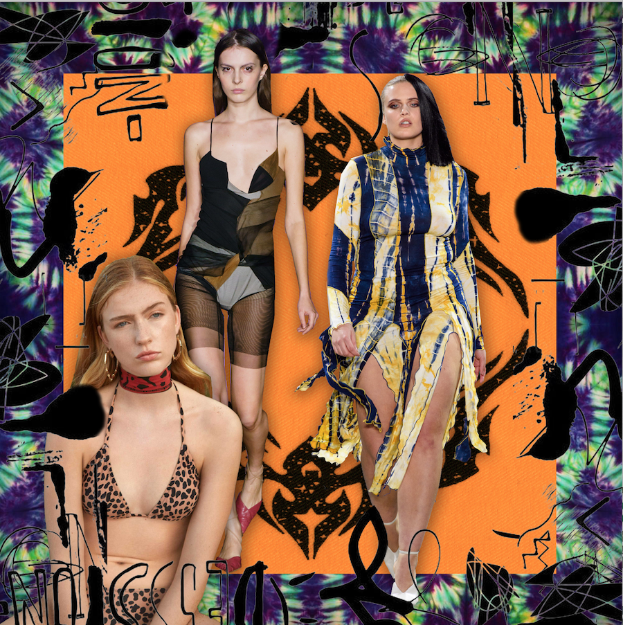 Infine, la tendenza SS 2021 Hacker Spirit utilizza tessuti dalla mano simile al cotone, con un look naturale: voile, tulle e satin jersey sportivo, tessuti ridotti in strisce per poi essere “ritessute” e ricucite nuovamente insieme. I pattern valorizzano un approccio grezzo con ruvide vernici e collage che si mescolano a scarabocchi e scritte abbozzati. Tagliare e ri-assemblare è la parola d’ordine: l’utilizzo di spruzzi di vernice, dip dyes, tinture naturale e stampe ravvivano e migliorano tessuti usati e superati.