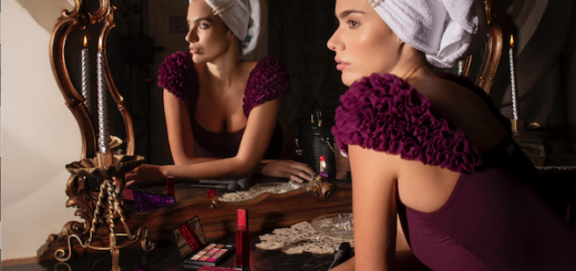 Il lusso è enfatizzato nei due bikini, triangolo con brasiliana e fascia con slip annodato, realizzati in jacquard nero con disegno geometrico gold impreziosito dall’esclusivo accessorio gioiello multicolor: una libellula realizzata con paillettes micro/maxi, perline e cabochon. Completano la collezione la maxi canotta e il mini abito realizzati in morbida rete stretch nei colori fuxia, nero e crema.