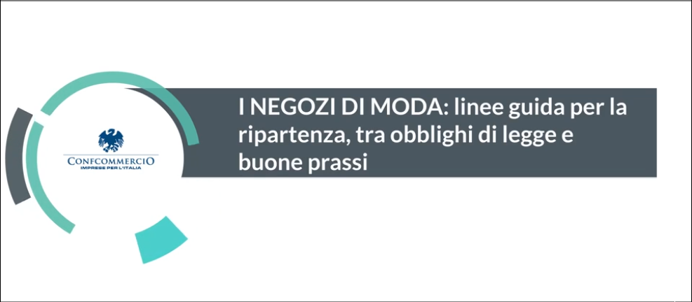 Nel video Massimo Torti illustra i contenuti utili per la riapertura in sicurezza dei negozi di moda, passando dalle “Cose da sapere” alle “Cose da fare”, con informazioni pratiche su pulizie, igienizzazioni, sanificazioni periodiche, prove e resi dei prodotti, accompagnati dalla cartellonistica necessaria per la corretta informazione, da una check list di autocontrollo sul rispetto delle prescrizioni del Protocollo del 24 aprile 2020 sottoscritto da Confcommercio con le Organizzazioni sindacali dei lavoratori e da una check list di sintesi del DPCM 17 maggio 2020.