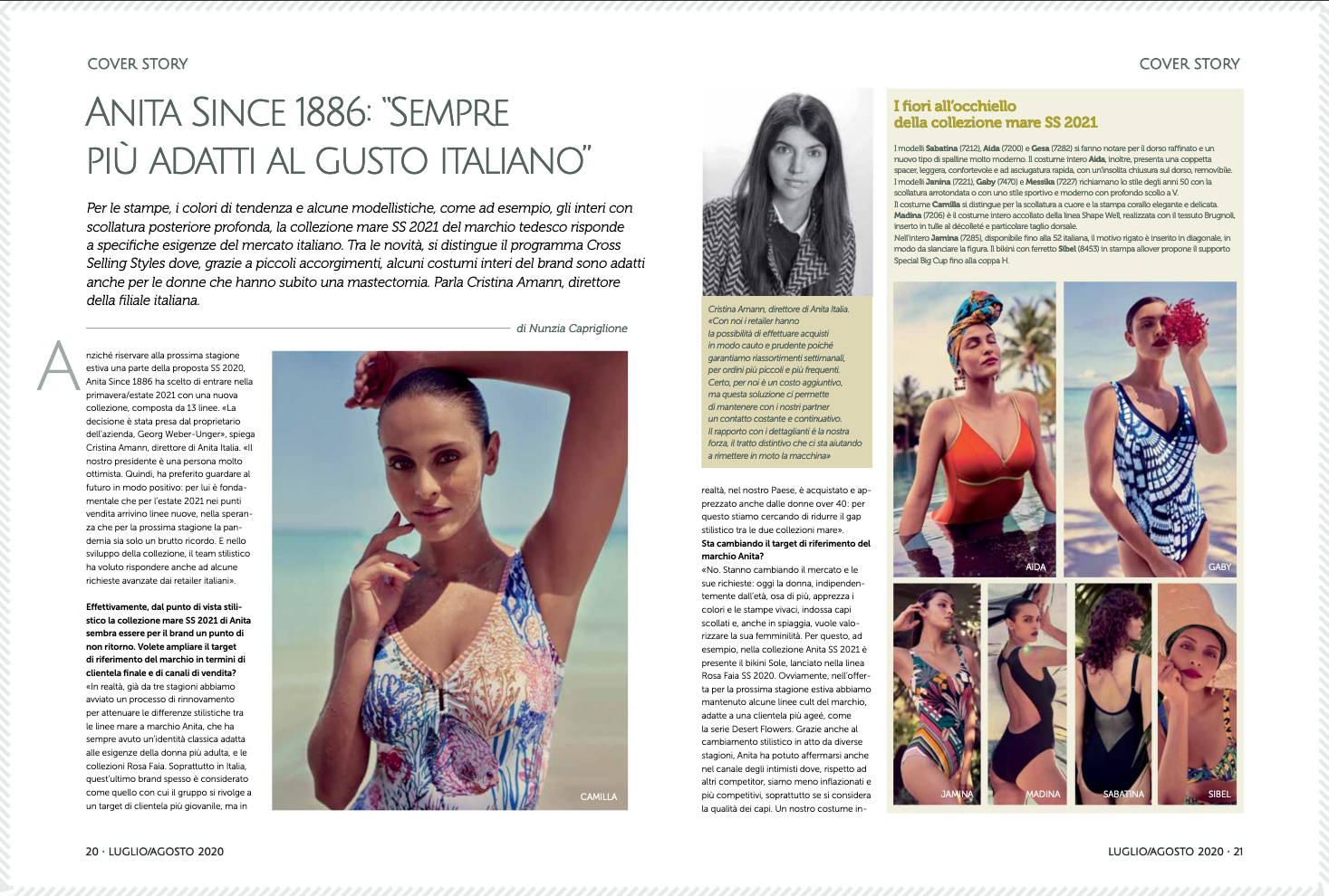 Nel numero di luglio/agosto di Intimo Retail le pagine dedicate all’inchiesta offrono una fotografia del canale a due mesi dalla riapertura, rivelando che in Italia la ripresa sta registrando risultati positivi in alcune aree, soprattutto i centri della provincia, mentre in altre le performance sono meno entusiasmanti. L’intervista di copertina di luglio/agosto è dedicata ad Anita Since 1886: Cristina Amann, direttore della filiale italiana, illustra la collezione mare SS 2021 del brand e le innovazioni introdotte per rendere la proposta complessiva della maison sempre più adatta anche al gusto italiano. Delle nuove linee di costumi da bagno per la prossima stagione estiva, si parla anche nella rubrica Trend & Novità che punta i riflettori sulle collezioni proposte da alcuni dei principali player del settore. Infine, come di consueto, anche il numero di luglio/agosto di Intimo Retail propone altre notizie brevi relative ai mercati dell’intimo, del beachwear e della calzetteria e ai loro protagonisti.