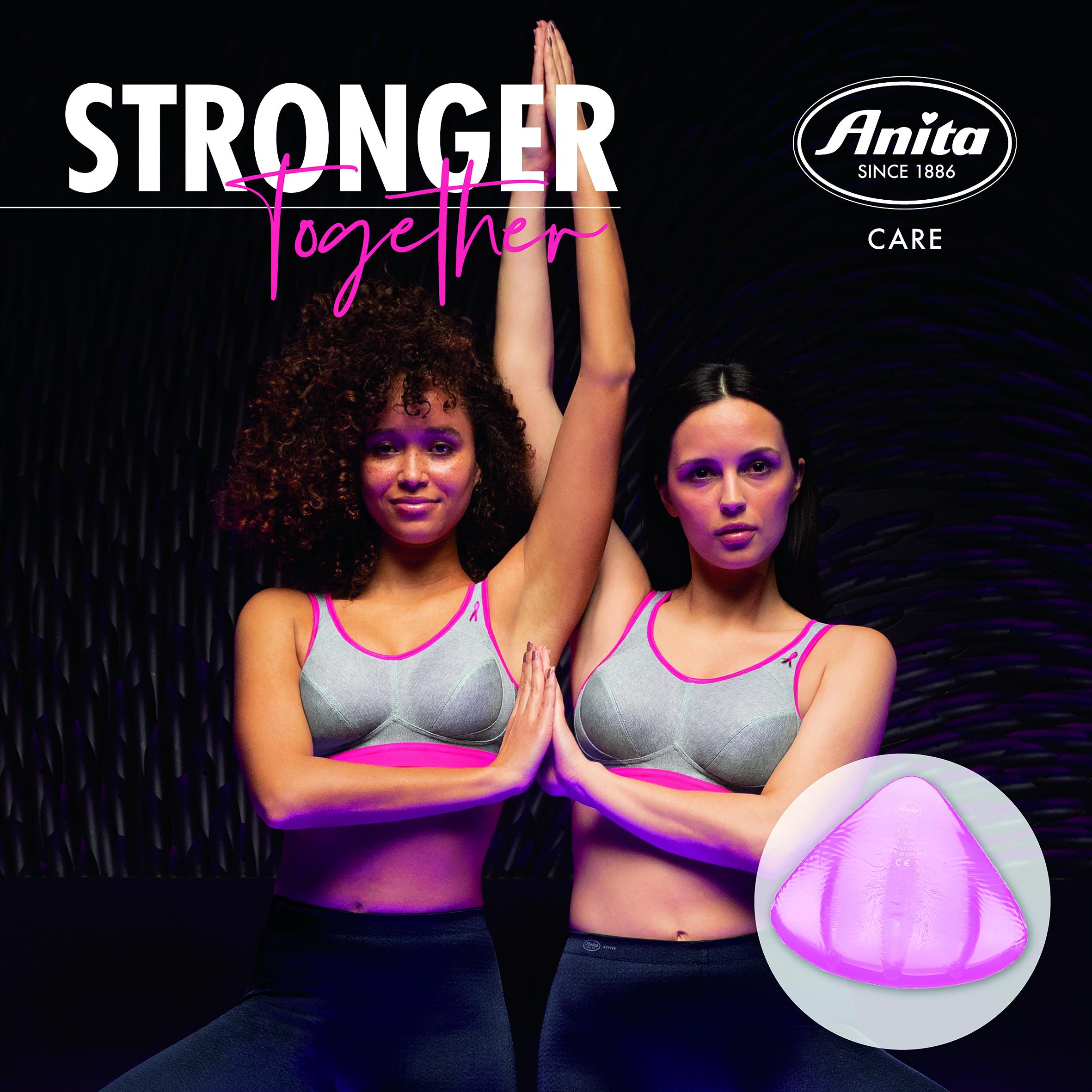 Nell’ambito di questa iniziativa, Anita propone in edizione limitata un reggiseno per protesi dalla linea sportiva, il modello 5727X, insieme all’accessorio in silicone 1086X realizzato per l’occasione nel colore pink. Rientra nel progetto Stronger Together anche il reggiseno sportivo Anita Active 5544 nel colore pink/antracite. I due articoli saranno negli store partner del brand dal 15 settembre in poi.