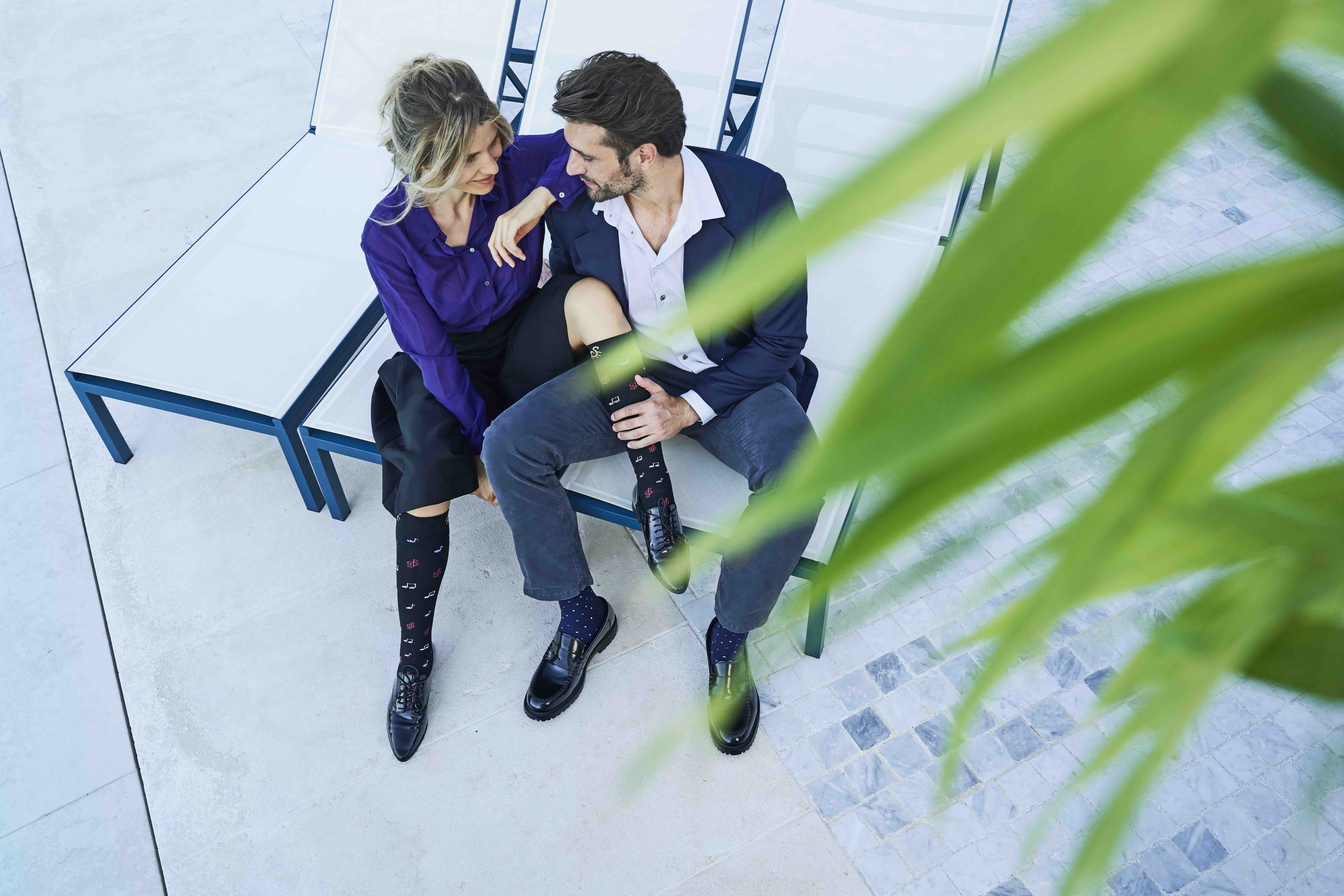 Nella linea Socks for you la ricerca nei materiali si coniuga con un design di gusto italiano. Oltre al modello base in tinta unita nera, infatti, sono disponibili altri modelli con coloratissimi motivi a tema: la variante Type gioca con le lettere dell’alfabeto, Square alterna quadri colorati, in Music sono ricamate le note musicali, e in Pois l’intramontabile trama di punti colorati.