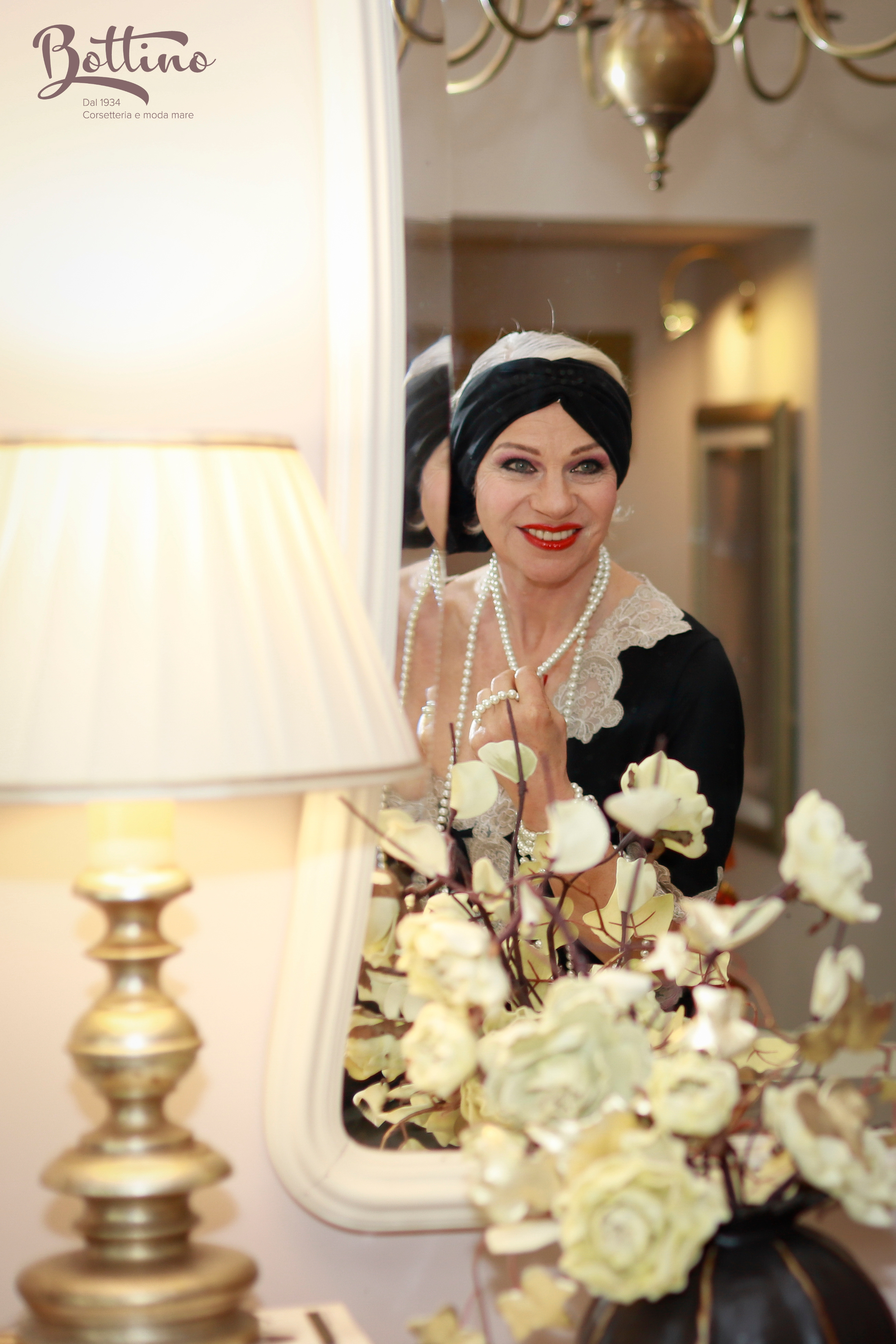 Inoltre, in un’atmosfera anni Trenta, periodo in cui è il punto vendita di Genova ha iniziato la sua attività, Madame Estrella ha indossato alcuni capi di lingerie da notte di una linea realizzata da un noto laboratorio artigianale toscano appositamente per Bottino Corsetteria.