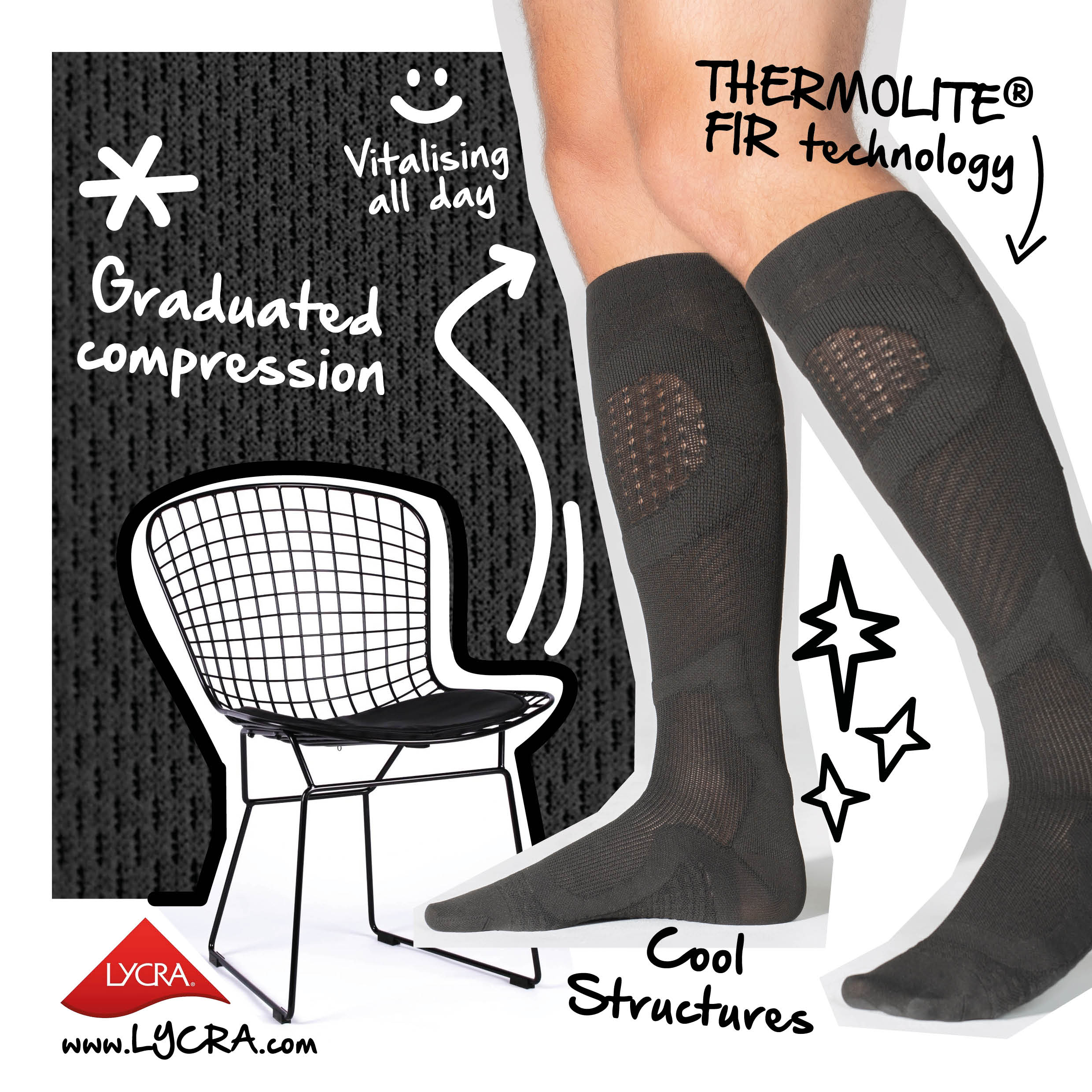 La tecnologia Lycra MyFit si ritrova nelle collezioni in particolare associata a Lycra Energize per le calze a compressione graduata e a Lycra Exceptionelle la tecnologia dedicata alle taglie forti.