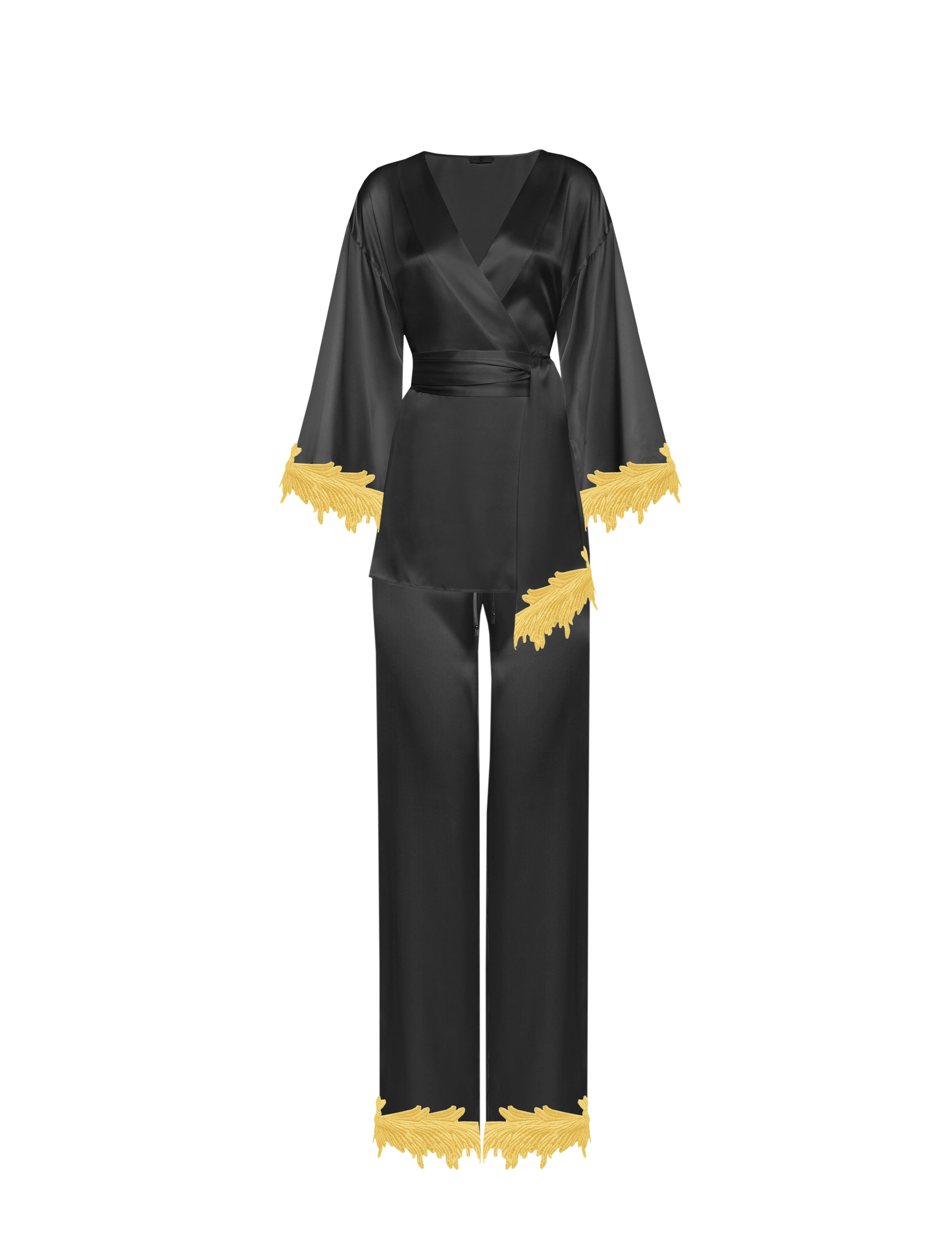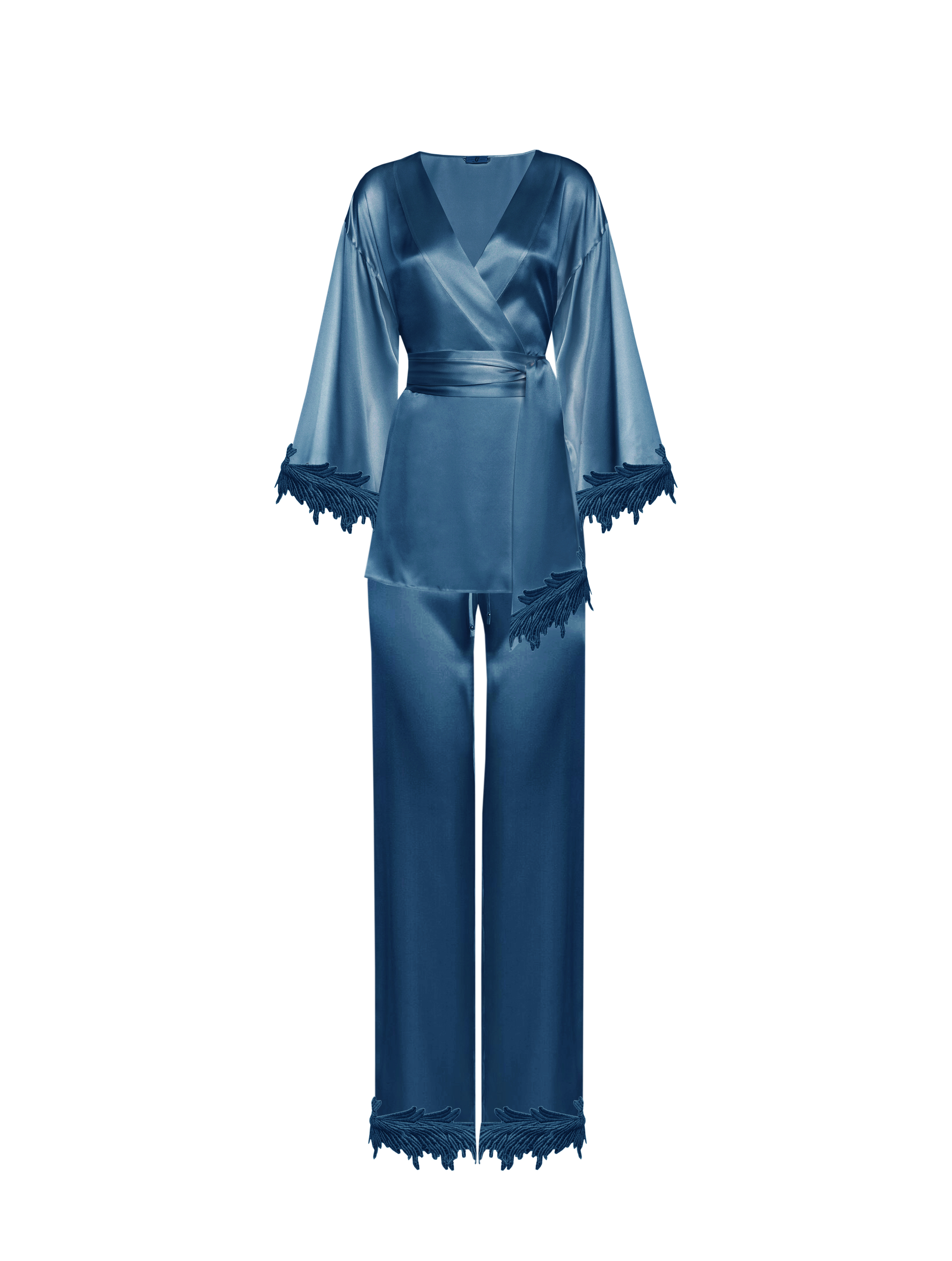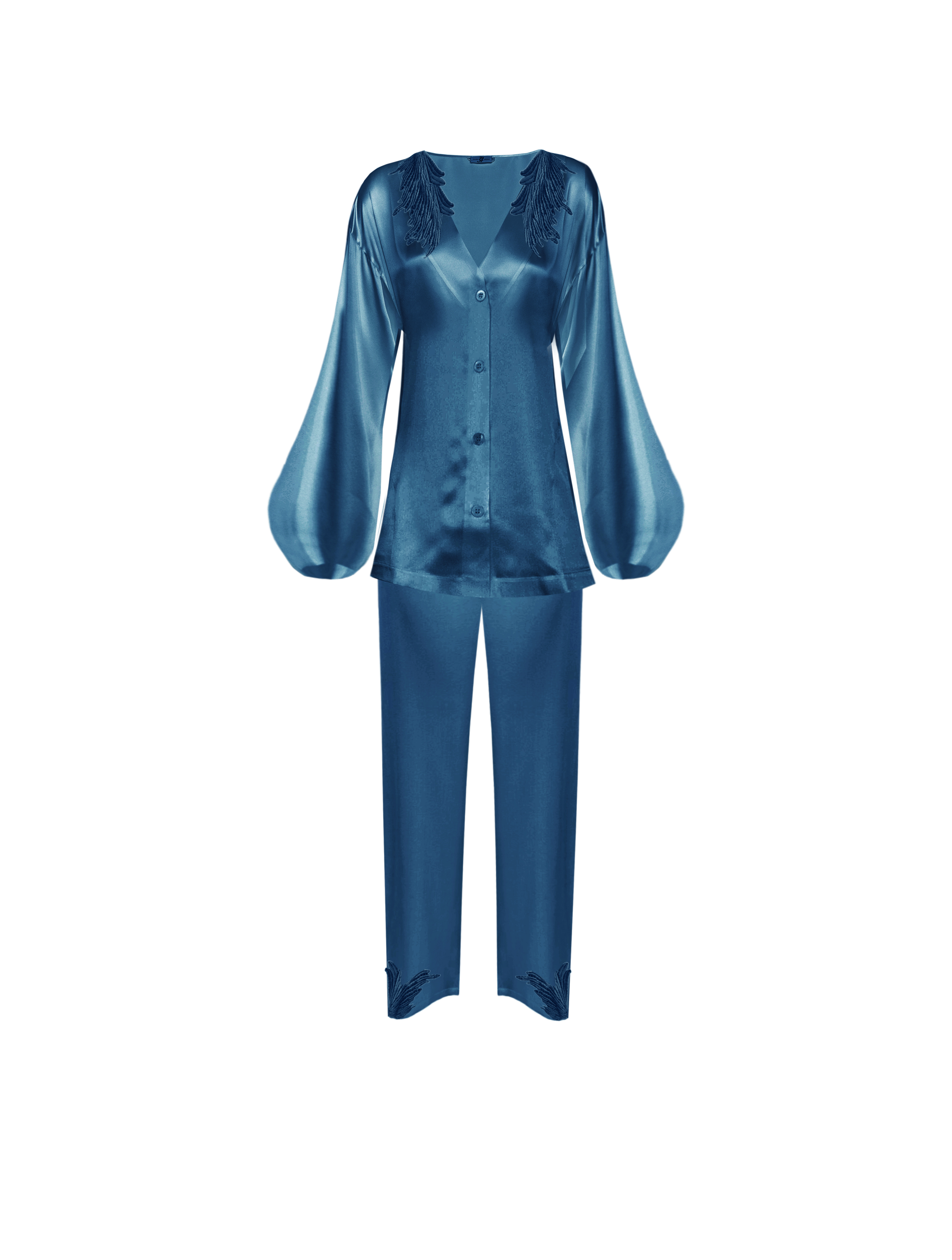 La linea di pigiami Boudoir ha, infatti, uno stile particolarmente glamour, con capi realizzati nelle nuances iconiche della maison. La serie Sleeping Angel ha un taglio classico ed elegante, con casacca strizzata in vita e pant palazzo, mentre per i capi Sleeping Swan, Clara Aestas propone maniche a sbuffo e pantaloncino pinocchietto.