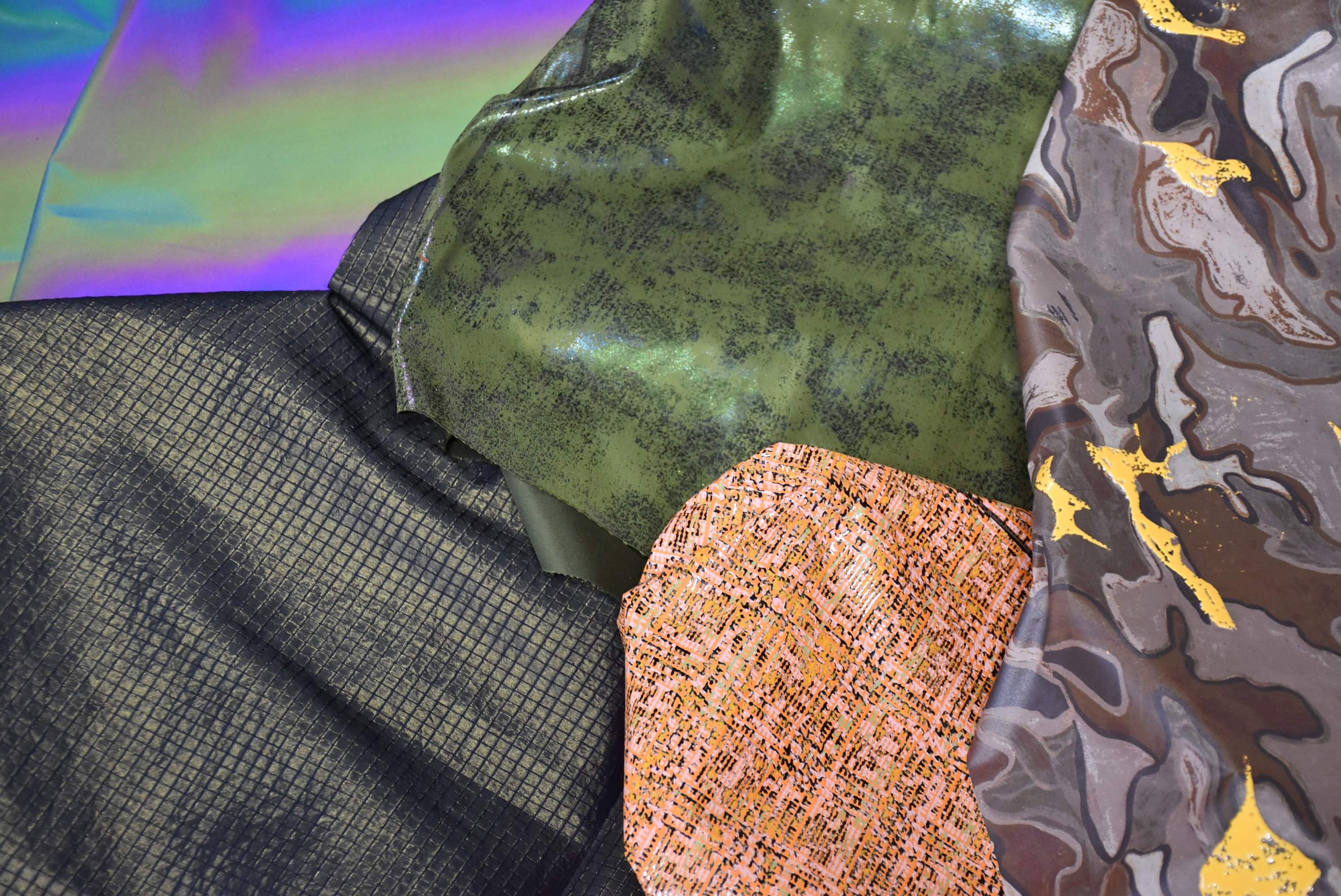 La proposta FW22-23 del brand di Colombo Industrie Tessili Mario Boselli Jersey celebra l’arte italiana ispirandosi ai giovani talenti, dando vita ad articoli luxury ma dall’aspetto moderno. Diverse spalmature e accoppiature sono applicate ad articoli classici come quelli di viscose fluide e crêpe, dando loro un aspetto sportivo e glam allo stesso tempo. In termini di materiali, la nuova collezione propone alcuni articoli in poliuretano che possono essere usati sia per gli accessori che per l’alta moda.