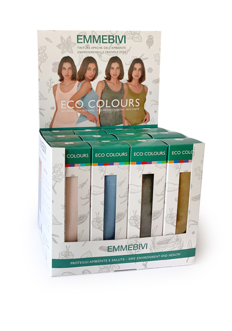 Infine, per la linea Eco Colours Emmebivi progettato un packaging specifico che evoca e racconta il percorso di produzione; di commercializzazione e di presentazione con un sellbox da 12 pezzi preassortito.