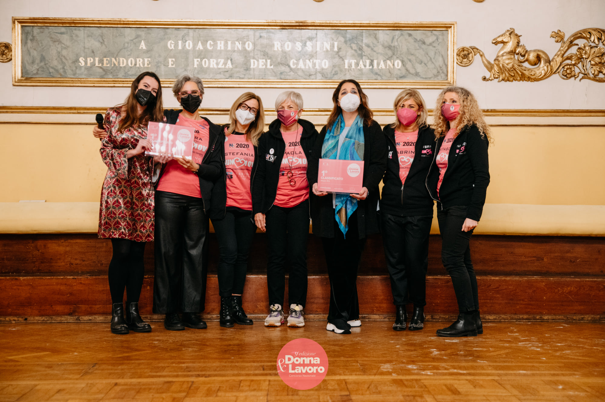 A Francesca Romana Grippaudo e Chiara Pasini il premio Donna e Lavoro è stato consegnato da Sandra Callegarin fondatrice della Onlus Ryla (Run your life again) insieme ad altre donne che fanno parte della Onlus: donne che hanno avuto il cancro al seno e che oggi raccolgono fondi a favore dell’Istituto Oncologico Veneto di Padova partecipando a maratone e gare podistiche.