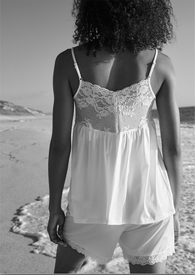 Cradle to Cradle Certified, la nuova linea combina un pizzo romantico e seducente con un elegante raso e un morbido cotone nella parte interna. I modelli della linea 100% Nature Romance, un pigiama corto, una camicia da notte e un kimono, sono suggeriti nella tonalità star white e sono pensati per la prima notte di nozze o la mattina dopo il grande giorno.