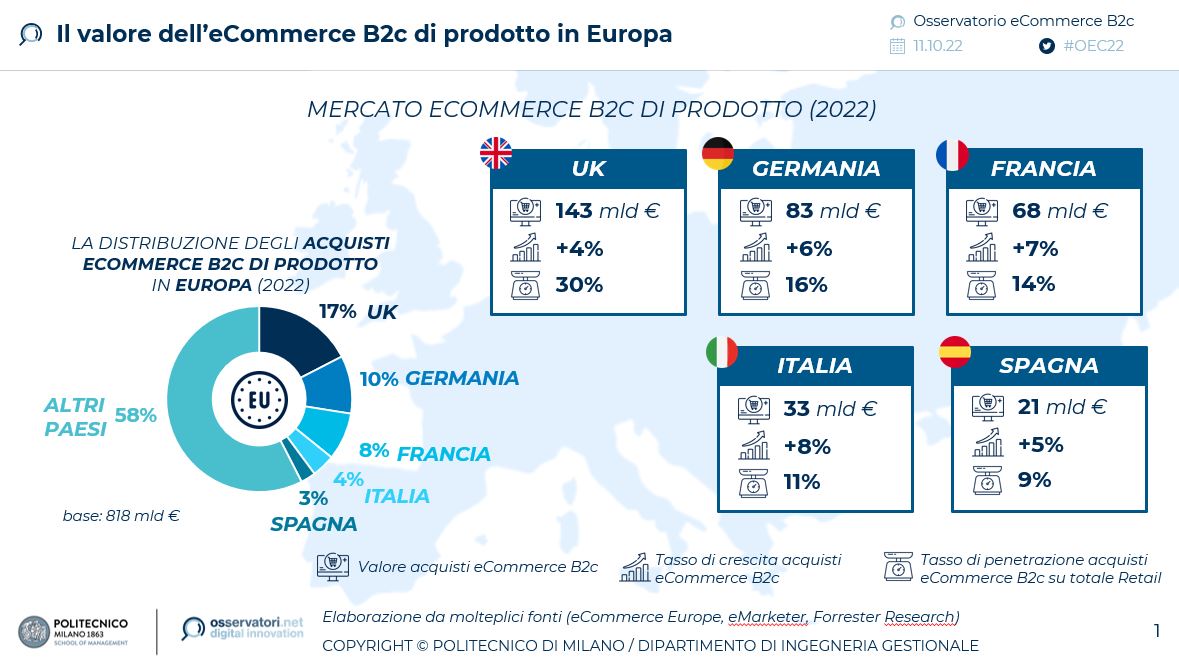 Nel 2022 gli acquisti online in Italia hanno raggiunto quota 48,1 mld di euro (+20%).
