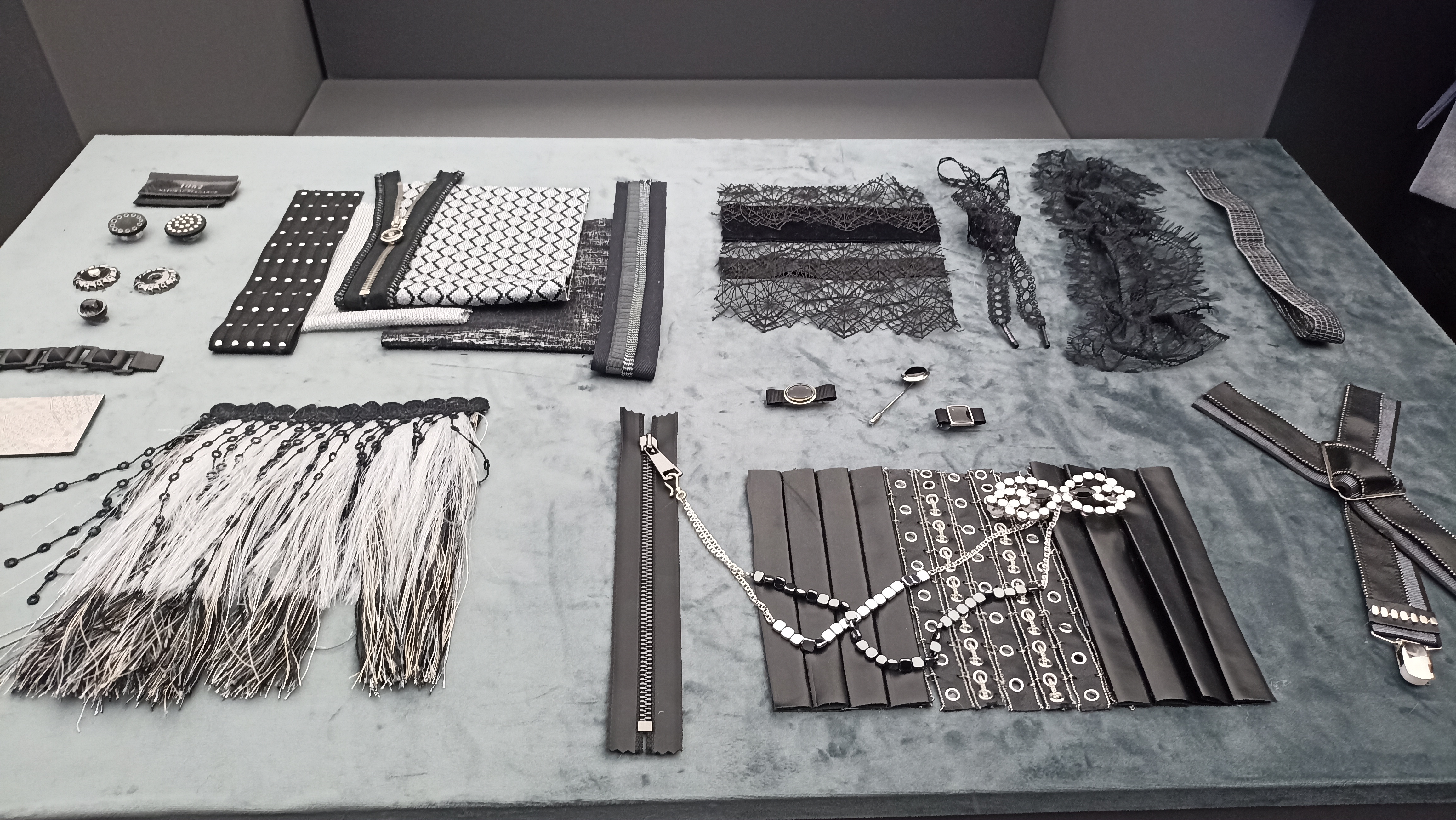 Nel tema Night Community autunno/inverno 2024-25 gli accessori prevedono applicazioni termoadesive; le frange sono in mischia di filati abbinati a tessuti operati; i nastri elastici sono in filati di lana rigati e spigati. Molti gli accessori in pelle e metallo, con un aspetto che richiama la corsetteria, con piccole catene e con spillette decorative. L’intimo è in macramè di passamaneria. A livello cromatico prevalgono chiaroscuri tono su tono e la scala dei grigi.