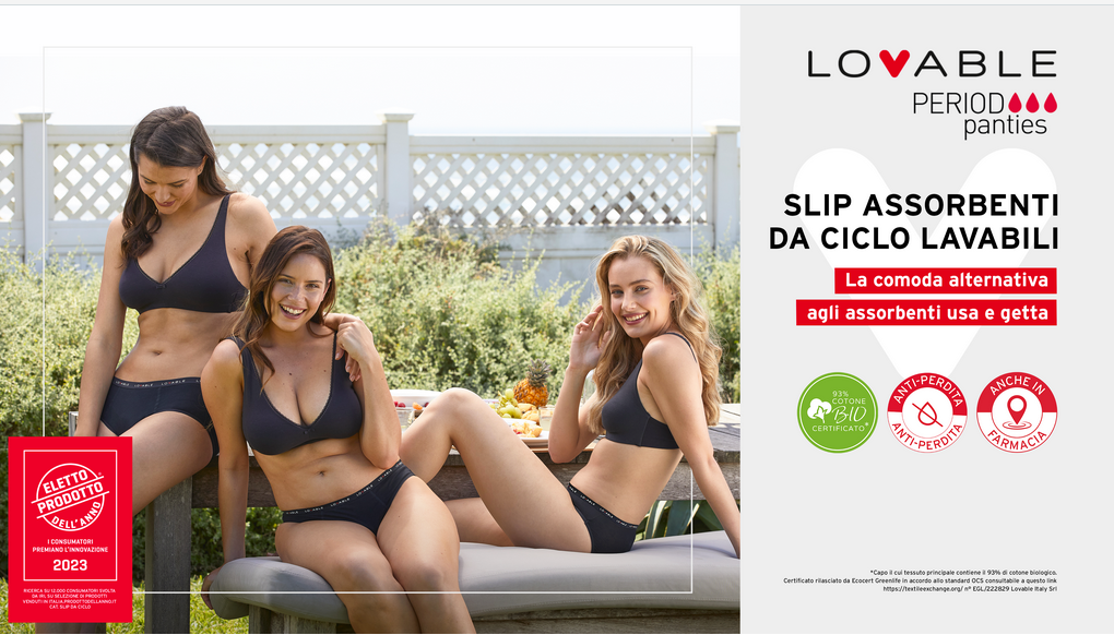 «Aver ottenuto il riconoscimento “Prodotto dell’Anno 2023” che arriva direttamente dalle consumatrici è per noi motivo di grande orgoglio perché premia la qualità del nostro prodotto e il nostro impegno verso scelte più consapevoli», dichiara Daniela Murelli, direttore marketing di Lovable Italy. «Con le Lovable Period Panties vogliamo garantire a ogni donna il massimo del comfort anche durante i giorni delle mestruazioni, grazie a un innovativo sistema di assorbenza che permette di sentirsi a proprio agio in ogni movimento e in ogni momento della giornata senza il timore di macchiarsi. Riceviamo quotidianamente riscontri positivi sulla comodità e le performance delle Period Panties dalle nostre consumatrici attraverso i nostri social e i nostri negozi, opinione confermata anche da questo riconoscimento».