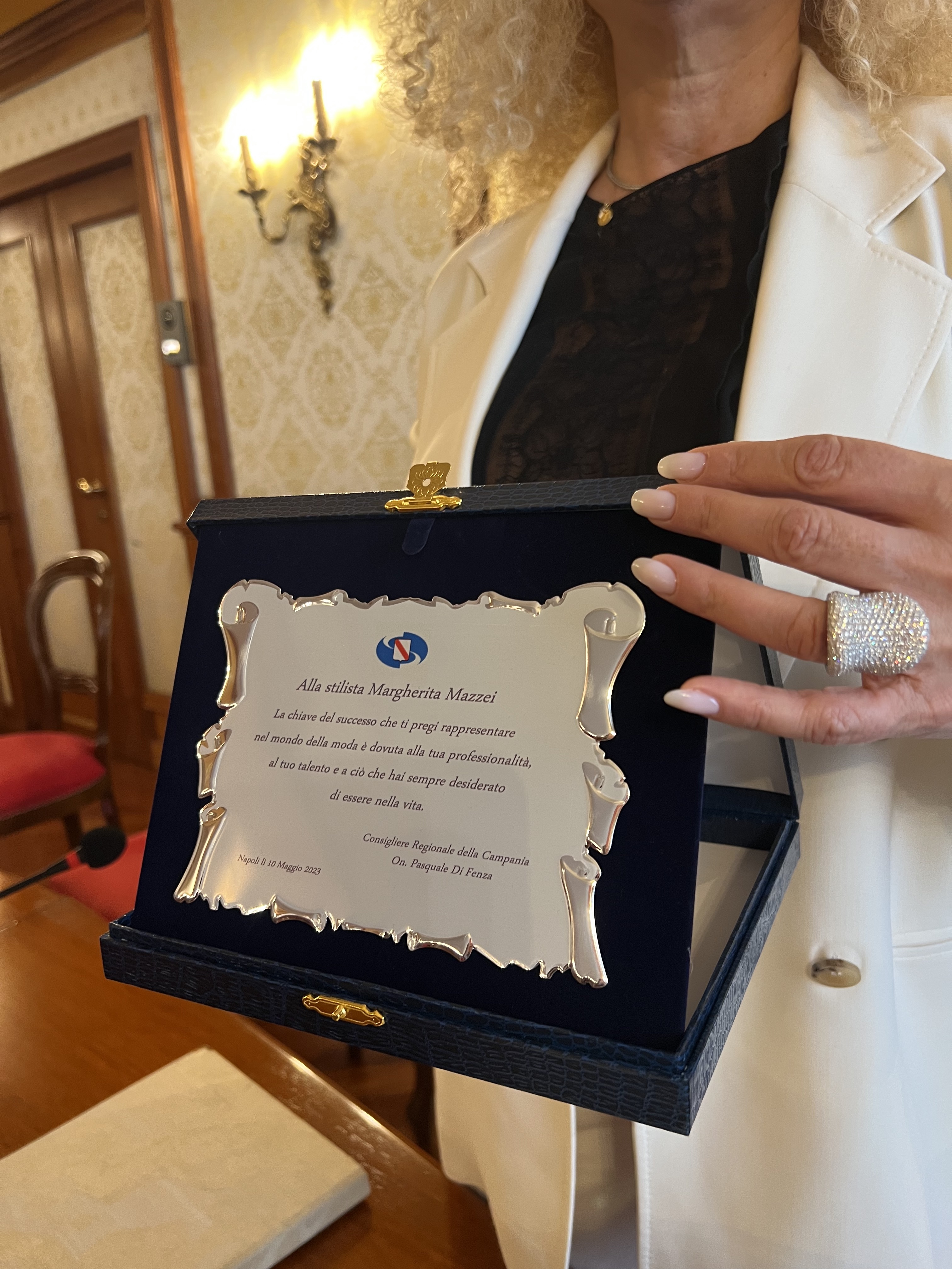 Il 10 maggio 2023, infatti, l’ideatrice delle collezioni District – Margherita Mazzei ha ricevuto una targa di riconoscimento dal Consiglio Regionale della Campania, perché con la sua attività ha saputo valorizzare e diffondere il “Made in Campania” non solo Italia, ma anche in tutto il mondo. Le collezioni della designer, infatti, sono distribuite nelle migliori boutique italiane ed estere, sia in Europa che nell’area Extra Ue.