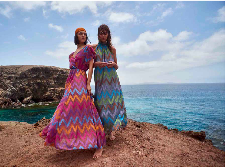 Nelle stampe, sofisticate e glamour, i tocchi gipsy rimangono appena accennati e i tagli evolvono verso forme fluide e ampie che coprono e danno struttura alla figura femminile. I bikini invece si distinguono per i cut ridotti, audaci e civettuoli.
