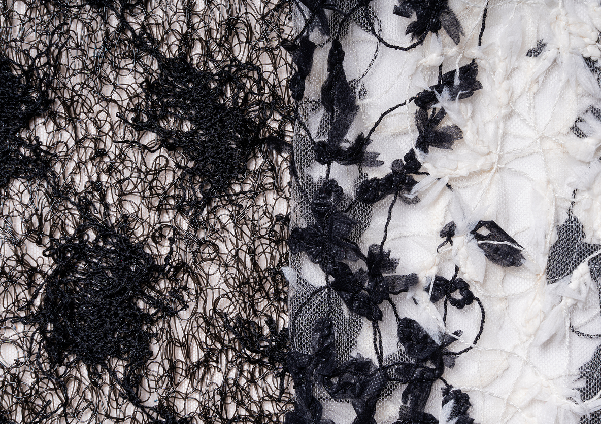 Il tema MU+ Regeneration identifica tre categorie (knitwear, embroidery e lingerie) incluse in una visione di una moda rigenerata sia nel senso materico che grazie all’utilizzo dell’AI. L’esplorazione vive nell’uso di materiali che possano essere coltivati e/o prodotti in modo rigenerativo per ridurre l’impatto ambientale, attraverso la scelta di materie prime come cotone, lane, seta, canapa oppure di materiali sintetici, come nylon e poliestere, la cui rigenerazione possa estendere la vita utile degli stessi materiali esistenti, ridurre la dipendenza dai materiali vergini e quindi anche gli sprechi. La palette colori è sofisticata e atemporale e suggerisce toni lattiginosi come bianco crema, rosa polveroso, giallo cera e grigio minerale, ravvivata dalle sfumature del rosa, riscaldata da un rosso/bordeaux e impreziosita dal platino. Nella maglieria convergono macro maglie lavorate dove la tridimensionalità e il gioco dei pieni e vuoti è preponderante, accanto a tessuti a maglia rielaborati e composti con lavorazioni embossed. Per l’embroidery il tema MU+ Regeneration raccoglie pizzi di ogni genere e ricami, anche in sovrapposizione, rigenerati e con una forte vocazione alla sostenibilità; per gli accessori, sono qui raccolte etichette con ricami, alamari in macramè e grandi volants in cotone. Fanno parte del mondo lingerie tessuti leggeri e trasparenti come lo chiffon e il tulle, proposto anche come tessuto delle etichette, insieme a corsetti con stecche rigide, organza lavorata e taffeta plissé.