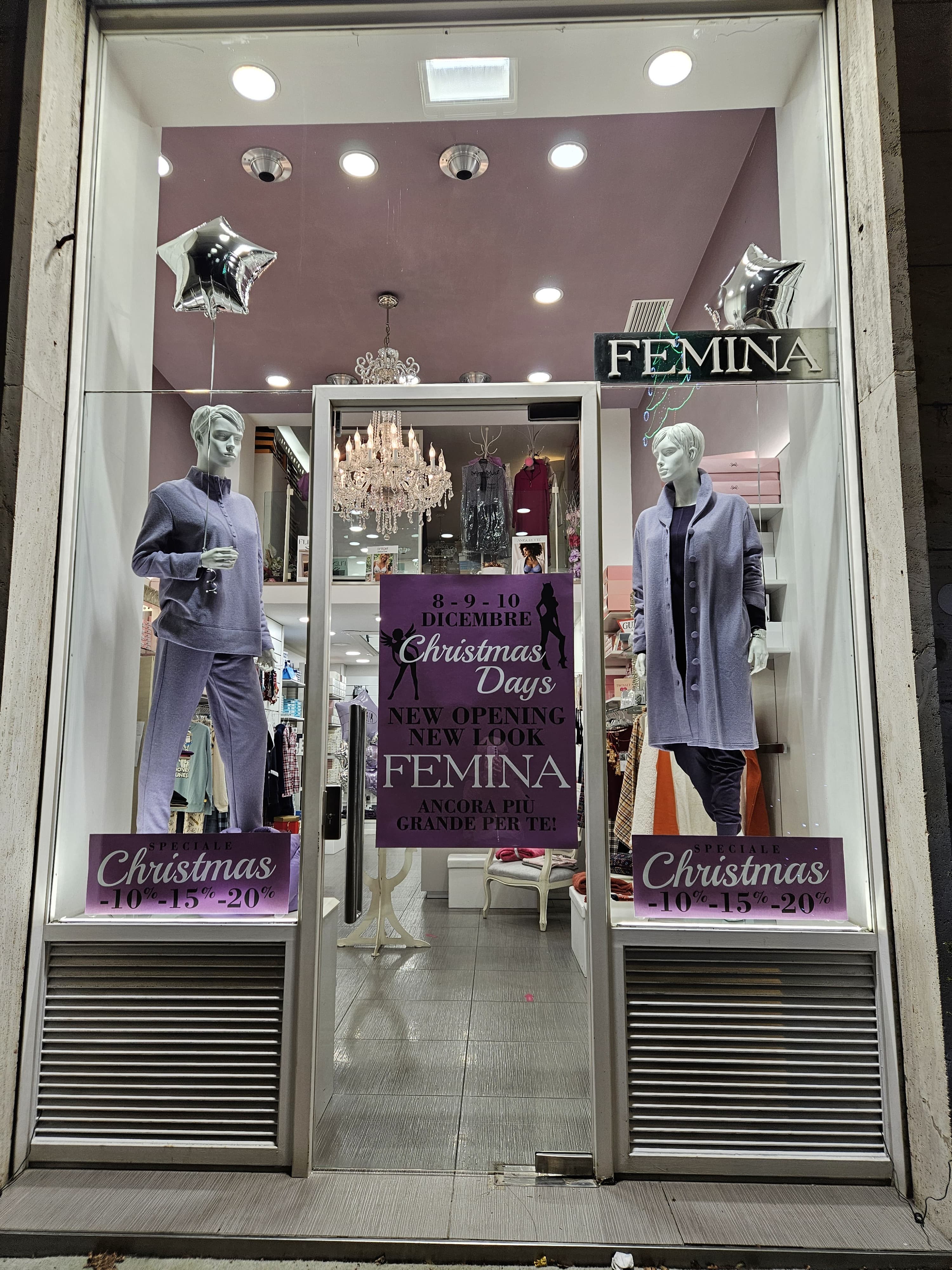 Le sorelle Filoscia hanno aperto il punto vendita Femina nel 1997, nel 2011 hanno realizzato il primo restyling, e nel 2023 hanno deciso di ampliare l’esposizione per riuscire a offrire un assortimento completo dei brand che contraddistinguono la loro proposta.