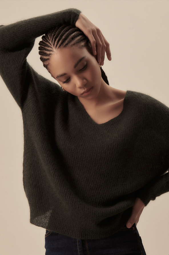 La linea Terra, nome che sottolinea il costante profondo impegno in materia di sostenibilità sociale e ambientale del marchio, introduce un’essenza fresca e moderna all’interno della collezione Oscalito A/I 2024: per la prossima stagione invernale, infatti, la serie in costa irregolare si affianca ai tradizionali tessuti a costina Oscalito, proponendo dei total look con pantalone, maglie e cardigan. Risultano estremamente contemporanee sia la linea in laize arricciata sia quella in costina con anello metallico e cut-out.