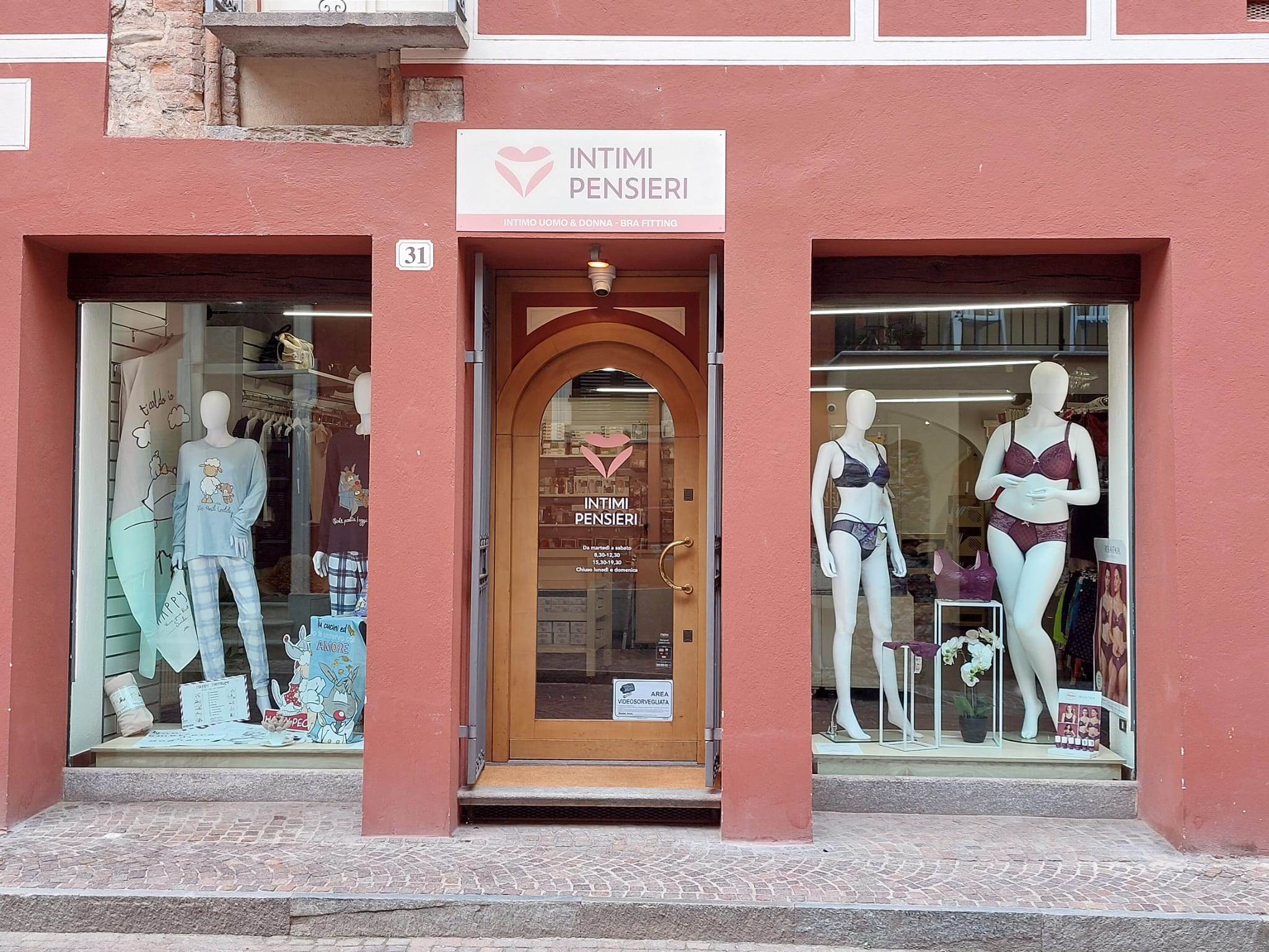 Nella nuova sede, Intimi Pensieri si sviluppa su una superficie di 80 mq a cui si aggiungono 40 mq di magazzino. I camerini sono tre, di cui uno è dedicato alle sessioni di brafitting offerte gratuitamente ma su appuntamento, mentre le vetrine sono due.