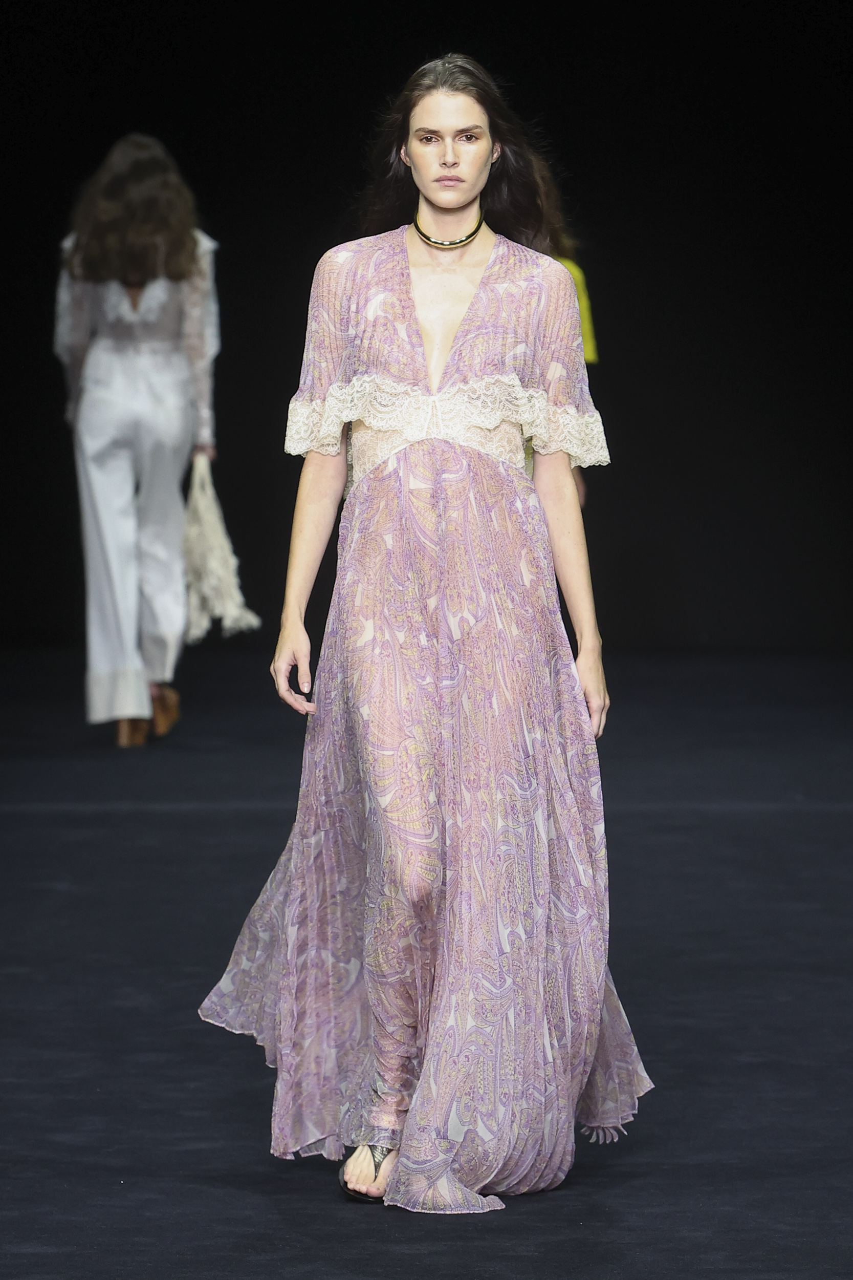 Nella collezione spring summer 2025 di Twinset la leggerezza si declina anche in abiti in crêpon di seta con stampe manuali o in tinta unita, in balze in pizzo di abiti corti e fluttuanti. E infine, la stessa leggerezza racconta la femminilità: abiti lunghi in viscosa mettono in evidenza i loro colori forti per scivolare lungo il corpo. Il risultato è una collezione pensata per vestire la contemporaneità senza mistificazione e senza confondere la moda con il lusso.