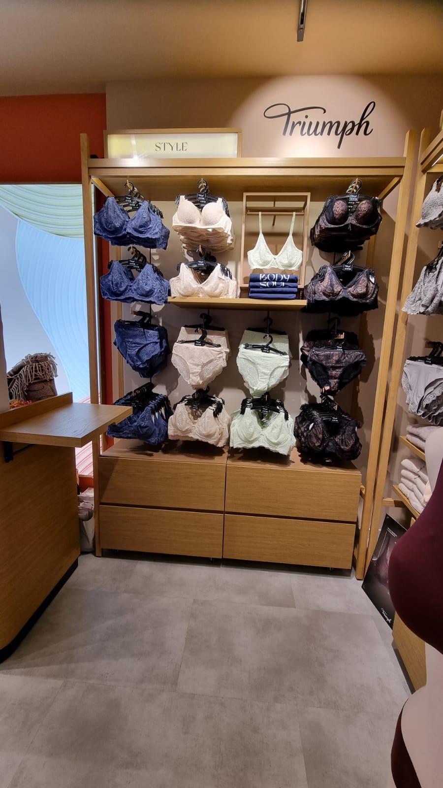 Elemento distintivo del punto vendita Calza Inn 2.0 è il format sviluppato in collaborazione con il marchio Triumph. Nell’ambito della partnership tra il brand e la proprietà, il 70% dell’assortimento proposto dallo store è rappresentato dagli articoli del brand di intimo e moda mare e del marchio Sloggi. Inoltre anche gli arredi e il lay out dello store rispettano il format dei monomarca di Triumph.