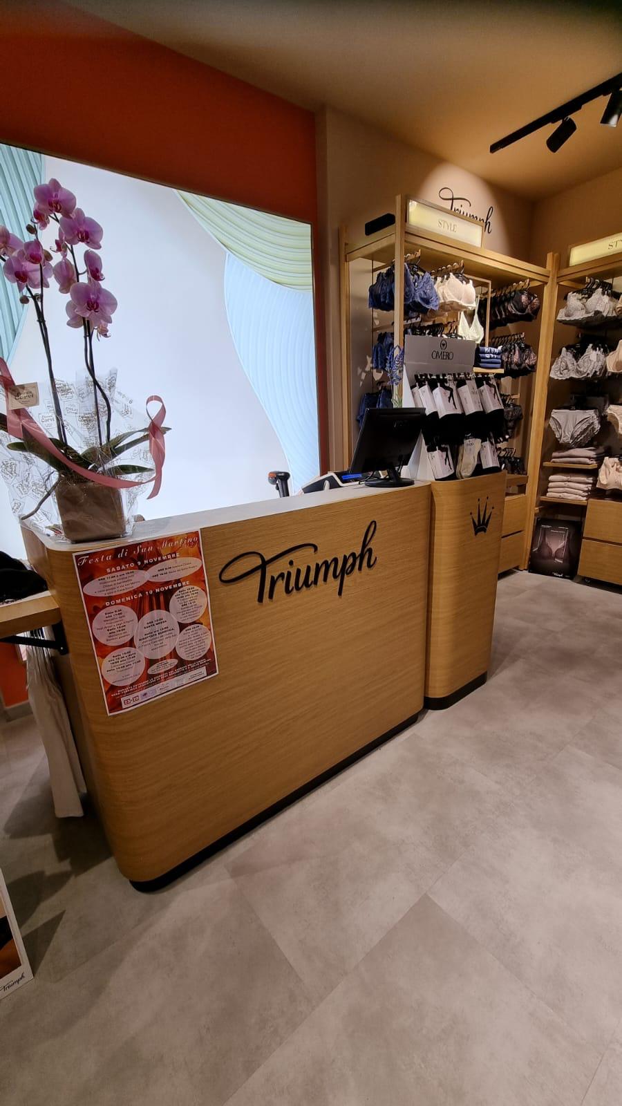 «È un concept nuovo e innovativo», dichiara Caterina Lamonica. «L’arredo e l’ambiente interno giocano con tonalità calde, come ad esempio le sfumature dell’arancione. È un format, che già dalle vetrine, esprime e comunica la sua identità: un luogo intimo e raccolto dove ogni donna può acquistare un capo di lingerie e corsetteria di qualità, usufruendo anche di una consulenza grazie alla presenza di Nunzia Penna. La qualità dell’offerta e la competenza contraddistinguono anche il punto vendita storico dove i marchi Triumph e Sloggi sono presenti da sempre».