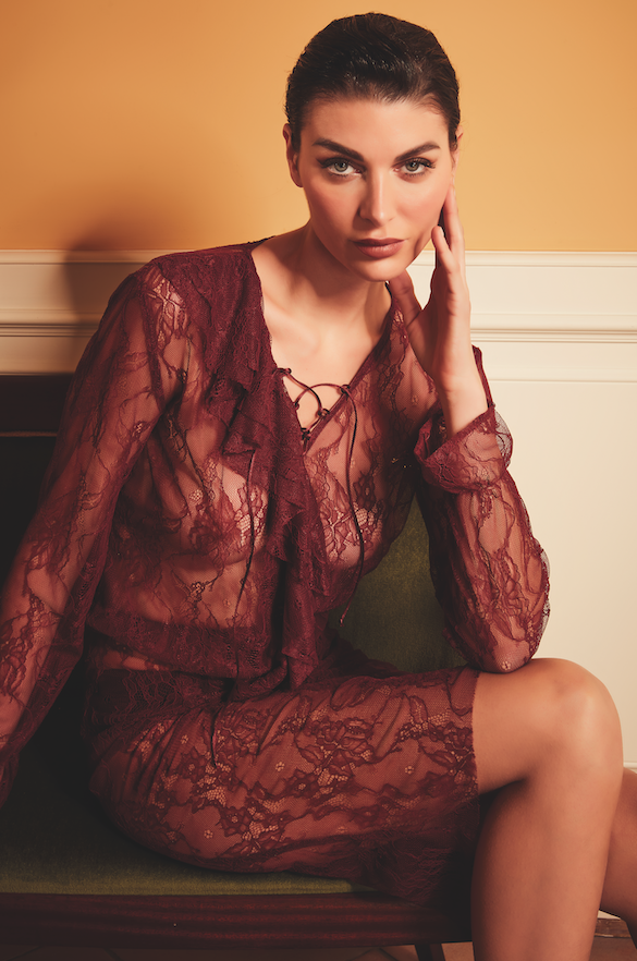 I pizzi e i giochi di trasparenze sono alcuni dei tratti distintivi di ogni collezione Impeccable-Privé e ritornano anche nella linea A/I 25 su sottogiacca, body e reggiseni abbinati ai completi. Che, per la prossima stagione invernale, sono proposti in una palette di colori decisi e seducenti.