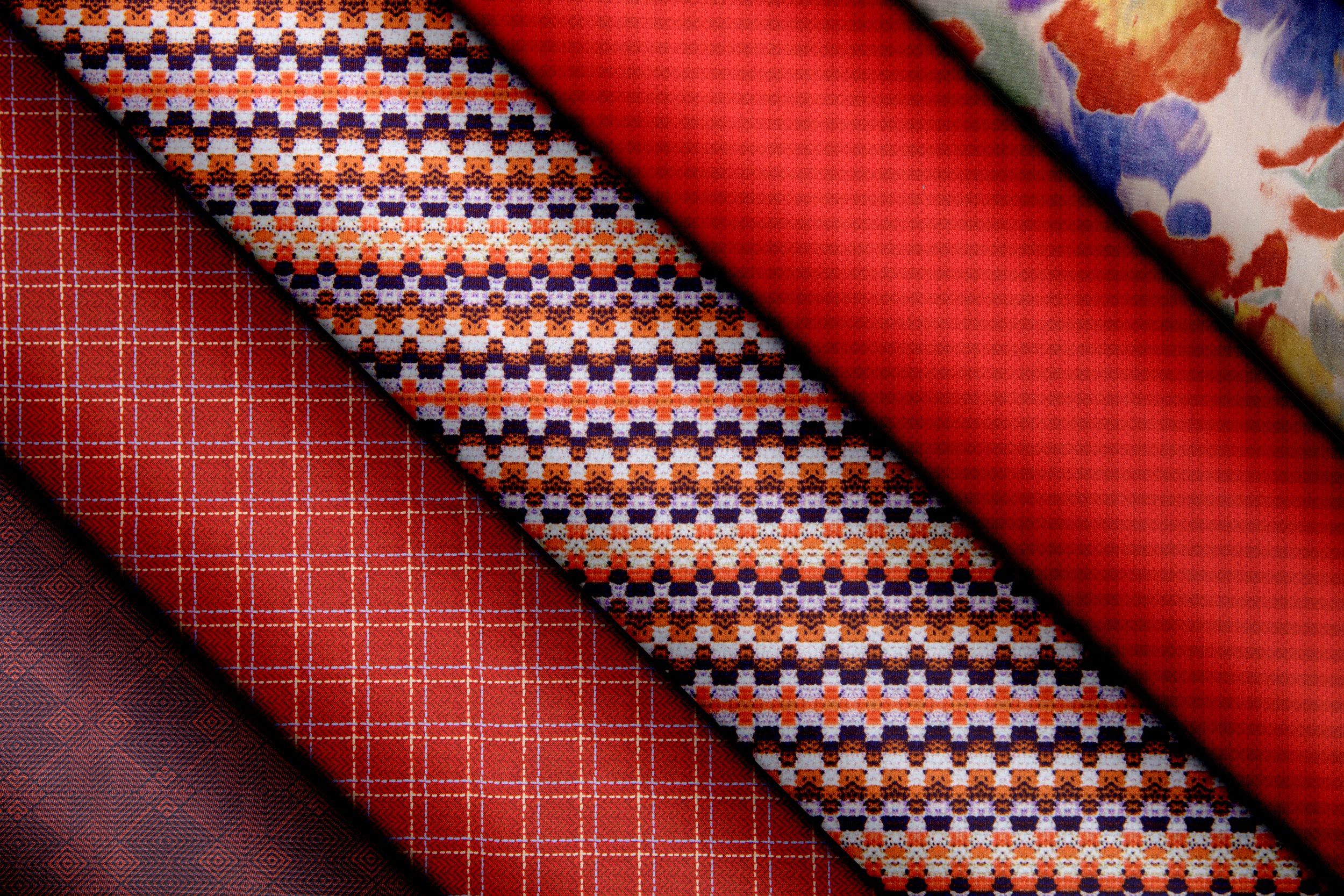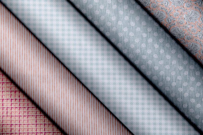 Stampe di intrecci, microgeometrici, motivi madras e floreali si arricchiscono di tonalità pastello, di blu e grigi con tocchi energetici di giallo e arancione, di colori caldi e vivaci ideali per realizzare capi leggeri e funzionali ed eleganti.
