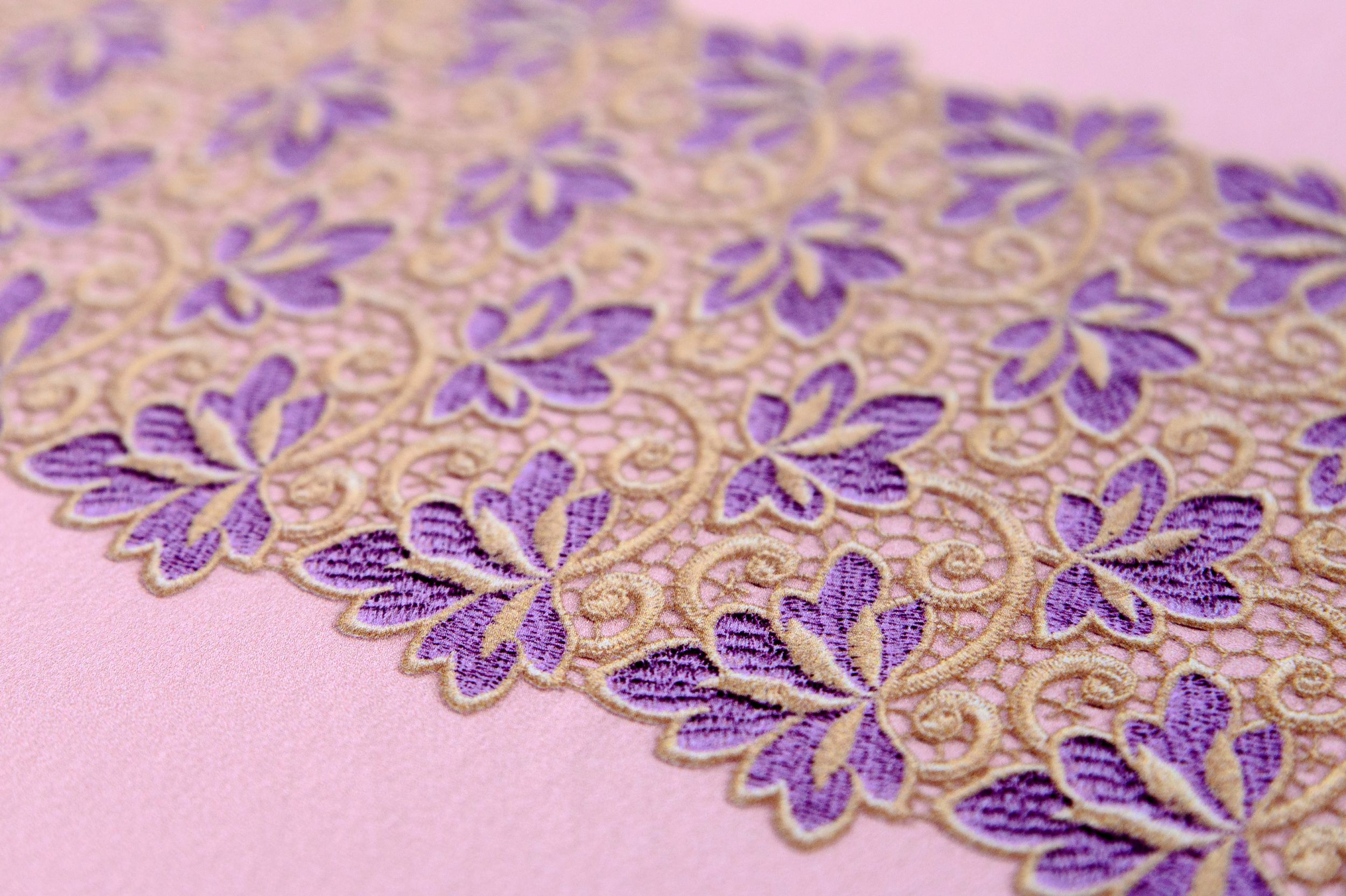 La stampa digitale che crea l’effetto pizzo macramè riproduce fedelmente l’intreccio del merletto con un effetto realistico. Grazie a questa tecnologia, ogni singolo filato stampato viene messo in risalto con precisione, creando un effetto tridimensionale che esalta la delicatezza e la ricercatezza delle decorazioni. La stampa effetto pizzo macramè rappresenta un’alternativa innovativa alle lavorazioni classiche, garantendo versatilità e definizione nei dettagli, per un risultato elegante e sofisticato che unisce bellezza artigianale e tecnologia tessile, con un approccio efficiente.