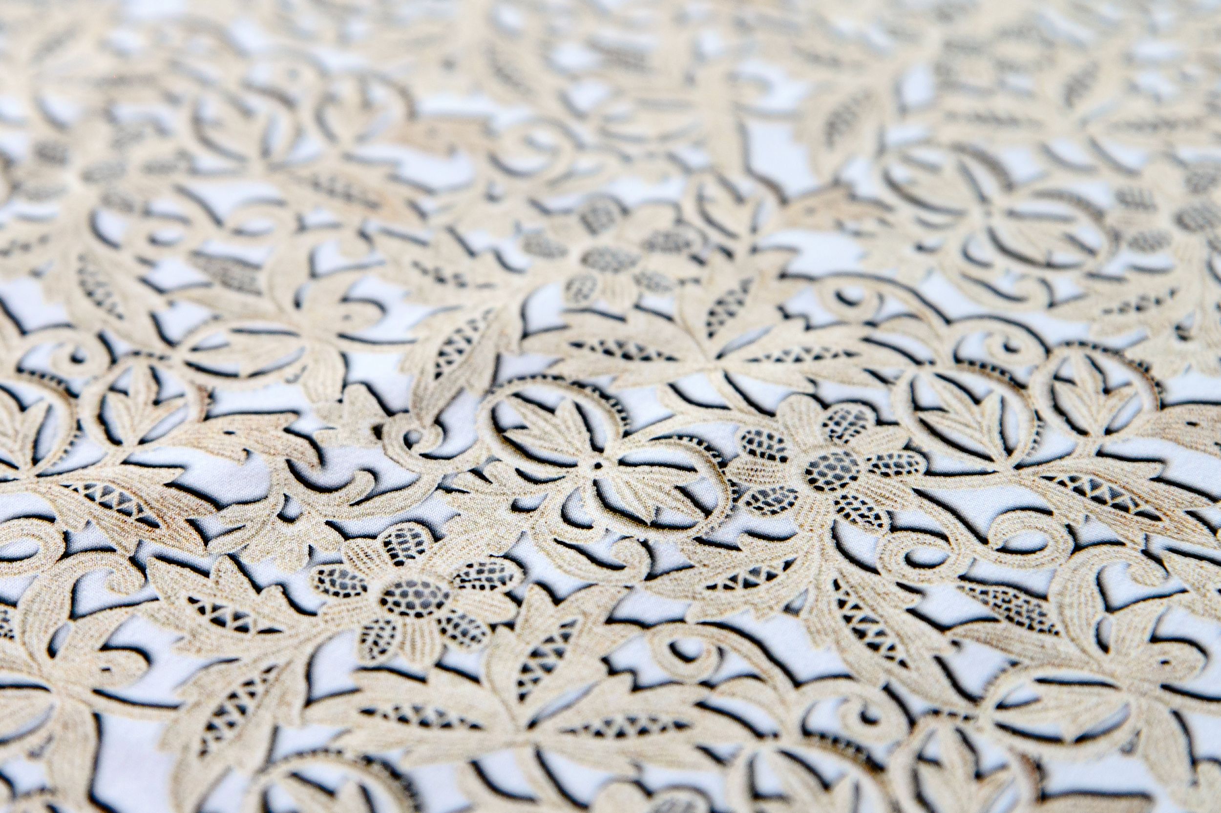 La prima è una tecnologia avanzata che permette di riprodurre decori preziosi direttamente sui tessuti, creando un effetto tridimensionale. Questa tecnica consente di ottenere dettagli raffinati e di grande impatto, esaltando la qualità e l’espressività del design senza l’utilizzo di applicazioni aggiuntive. Il risultato è una superficie decorata che combina la delicatezza estetica del ricamo tradizionale con i vantaggi della stampa digitale. Una soluzione che unisce eleganza, innovazione e sostenibilità in un’unica lavorazione.