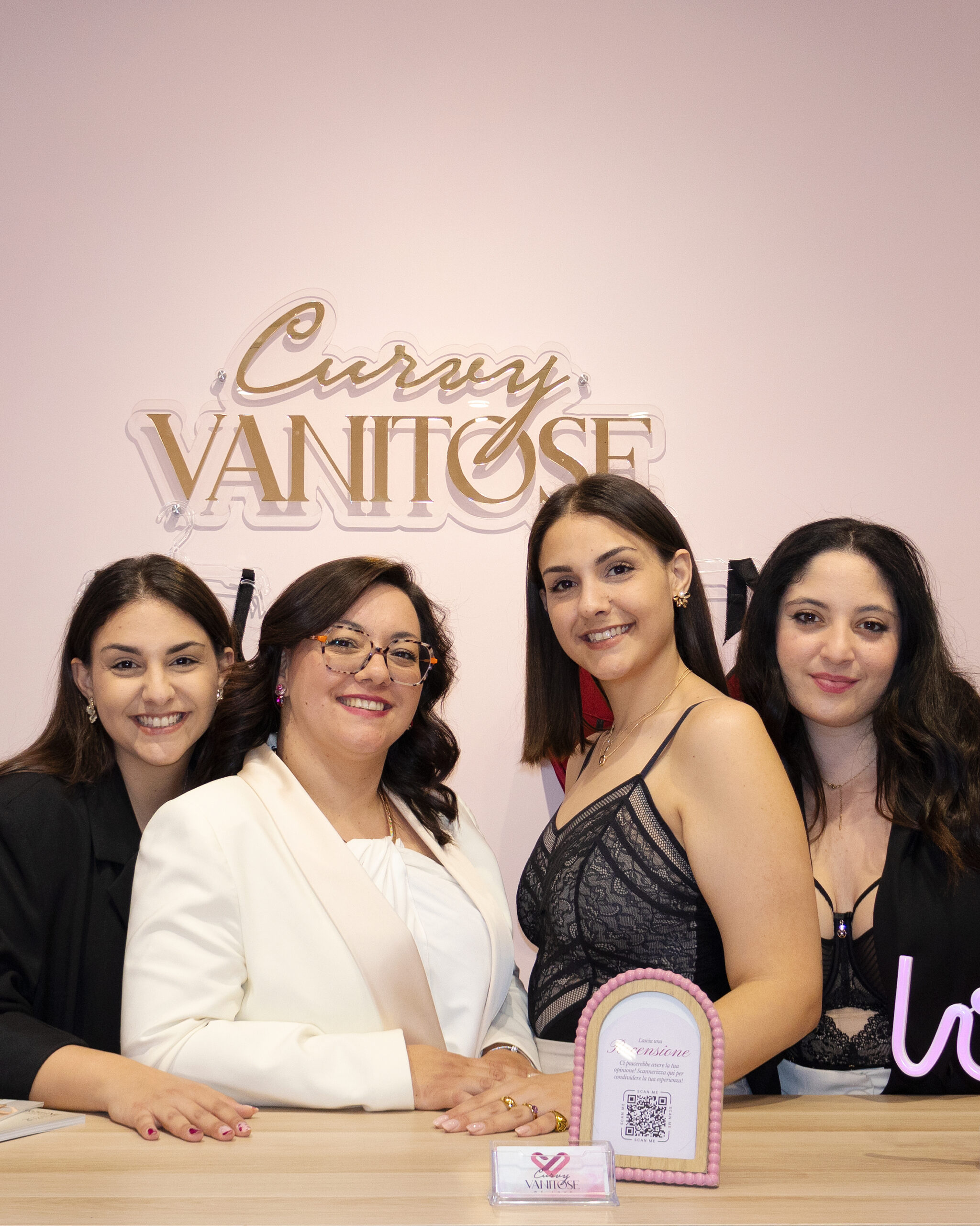 Al timone della boutique Curvy Vanitose c’è l’imprenditrice e bra fitter Antonella Scotto D’Abbusco, affiancata dalle tre collaboratrici che ormai da qualche anno l’accompagnano nella gestione dello shop online specializzato nella vendita di abbigliamento intimo e corsetteria in coppe differenziate per fisicità curvy.
