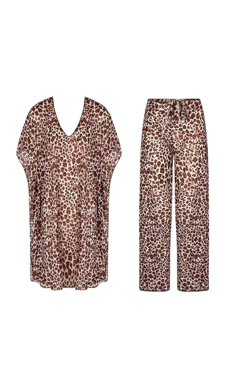 Per l'abbigliamento fuori acqua la serie La panthère mystère offre un pantalone con aperture laterali, un abito a manica corta e un poncho arioso perfetto per tutte le silhouette, adatto da indossare anche in città. Gli articoli sono realizzati in voile fluido e leggero. La linea include anche alcuni costumi completamente reversibili animalier/kaki che valorizzano ulteriormente l’abbigliamento beachwear.