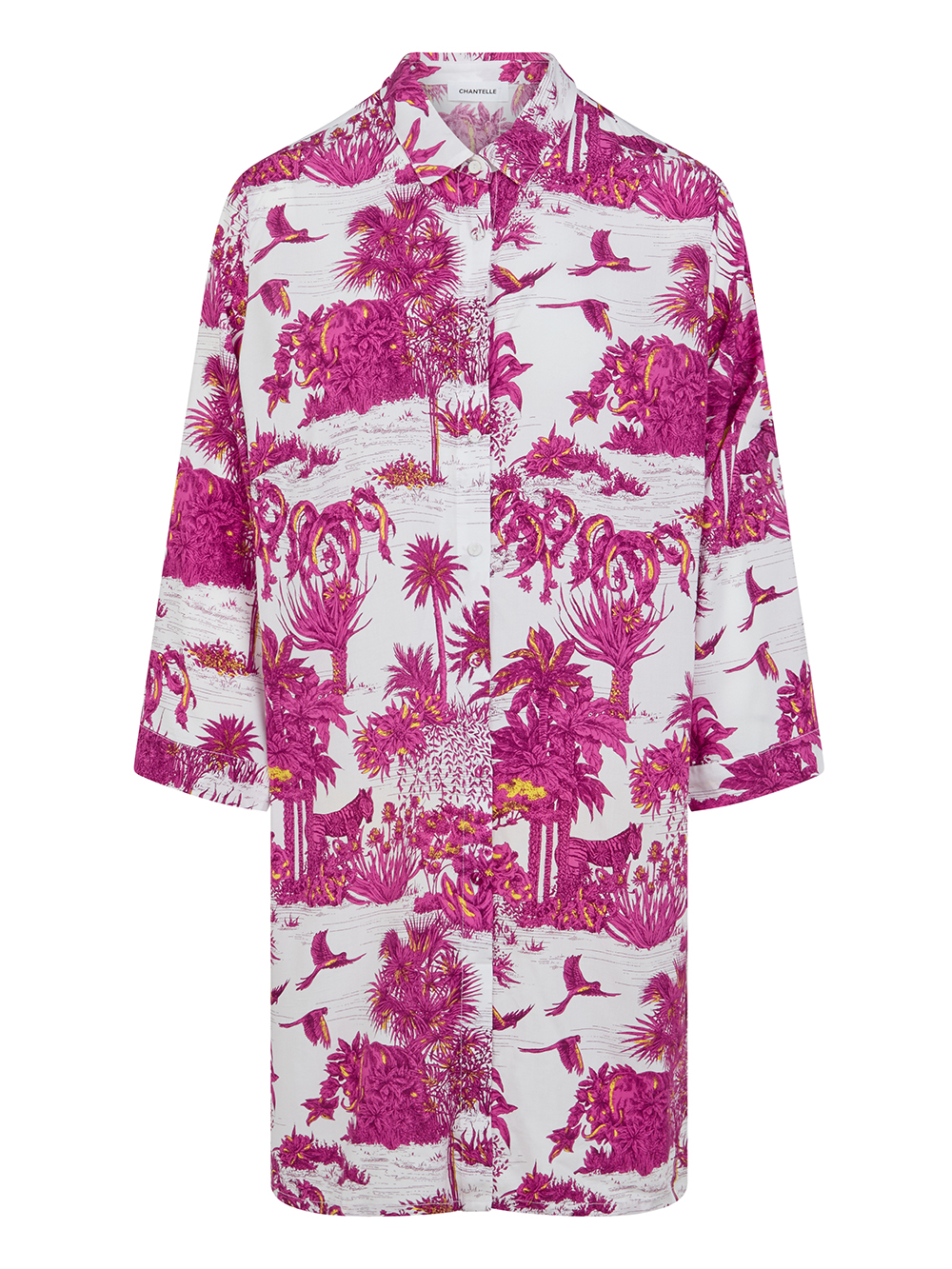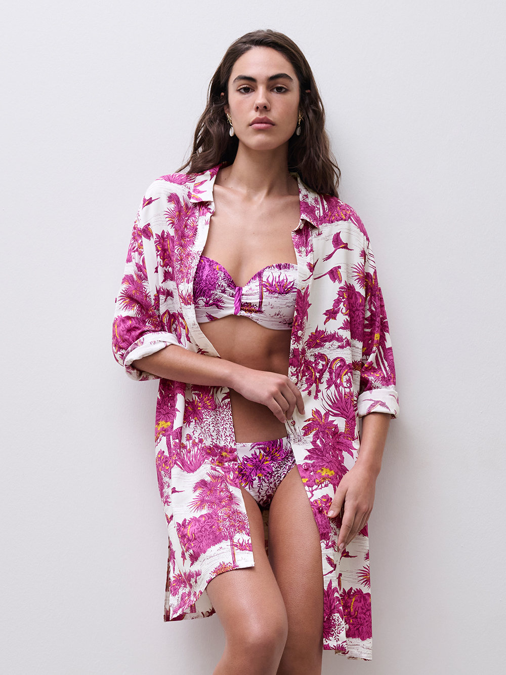La camicia a maniche lunghe Passionate è proposta nel colore white jungle abbinato alla linea di capi swimwear.