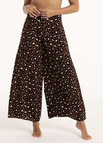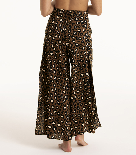 Realizzati in 100% viscosa, i pantaloni a portafoglio Jaipur sono leggeri, ariosi, ampi lungo le gambe, aperti ai lati. Annodati con laccetti prima sul retro della schiena e poi nella parte anteriore, sono indossabili in abbinamento anche con una camicetta o una t-shirt. Tutti i pezzi della serie Animal Magic si possono abbinare perfettamente anche con gli articoli Mix & Match in colore nero intenso.