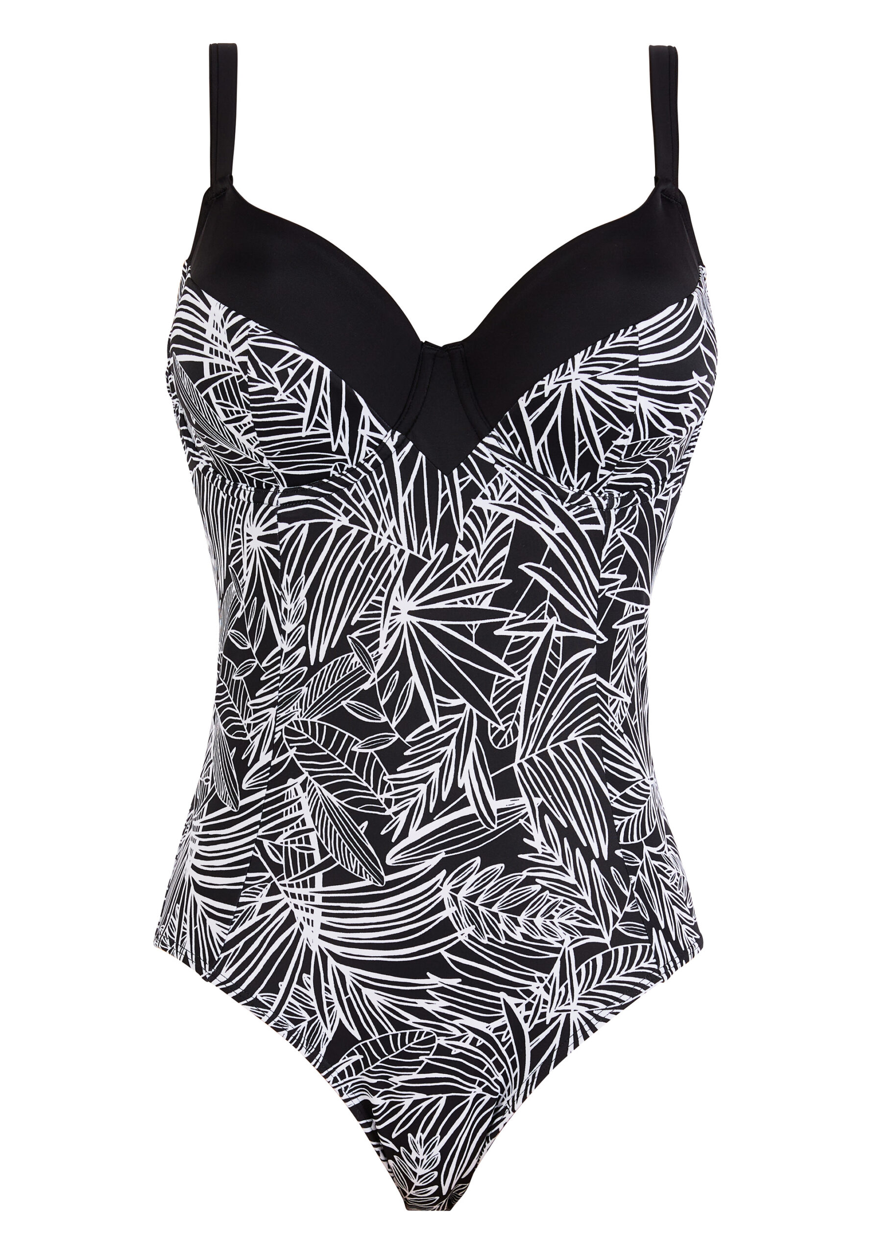 Stile elegante con stampa grafica, i modelli della linea Seychelles sono moderni e femminili e giocano con contrasti tinta unito nero e stampa geometrica in bianco.